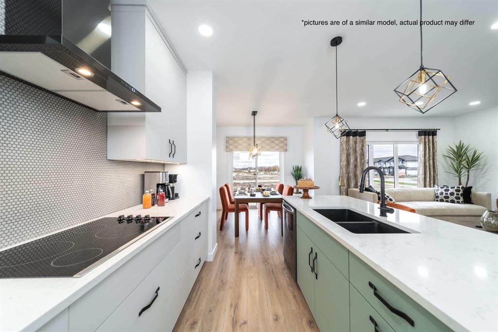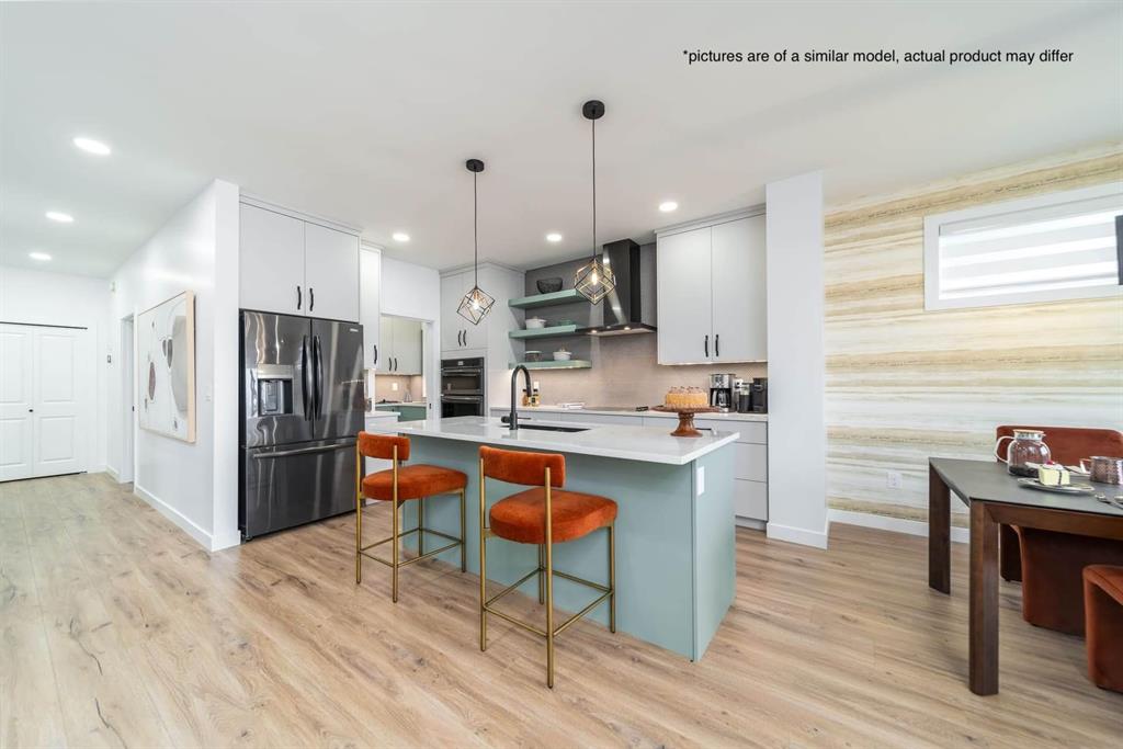 *Price without GST is for first time buyers only* Welcome to this impressive 2,064 sqft two-storey home that combines modern elegance with practical design. Featuring a spacious 22' x 22' double attached garage, this home is built to impress. The main kitchen is finished with quartz countertops in both kitchen and bathrooms, 40" upper cabinets, chimney-style range hood, and a convenient secondary spice kitchen for all your culinary needs. The main floor boasts vinyl plank flooring, 9' ceilings, and oversized triple-pane windows that bring in natural light, while the stairs and second floor are finished with soft carpeting. Upstairs, 9' ceilings continue the open feel, with thoughtfully designed living spaces. The basement offers excellent potential with a separate side entrance, steel beam support, delta wraps, and 8'6" foundation walls. Built with energy efficiency at its core, buyers may save up to 25% on CMHC fees, making this home both beautiful and financially smart. Builder Promo: Free A/C supply and install included.