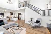 This 2200 sq ft 2-storey custom-built home by KDR offers a stunning open-concept layout with a full walkout basement and a west-facing view of the lake. Located in Prairie View Lakes, enjoy country living with city conveniences. Featuring 3 bedrooms and 2.5 bathrooms plus loft. Double entry way doors lead to the spacious foyer that flows seamlessly into the kitchen and dining area with 9 ft ceilings and quartz countertops. 18 ft ceilings in the great room includes an electric fireplace with entertainment wall. Electric fireplace, LED lighting, second floor laundry and a luxurious ensuite in the primary bedroom with soaker tub, tiled shower with glass door and double sink vanity. 200 amp electrical and an exterior finished with stucco, stone, and hardi board and so much more! Still time to customize it yourself. To be built, may not be exactly as shown.