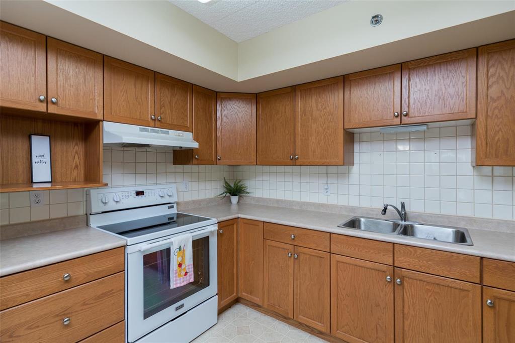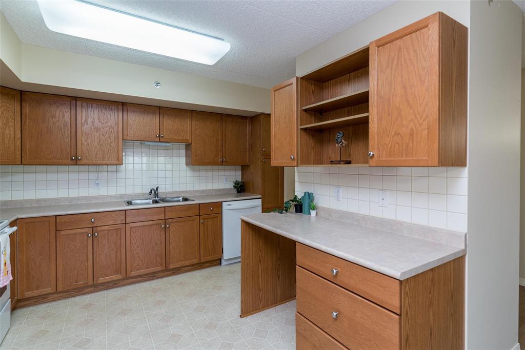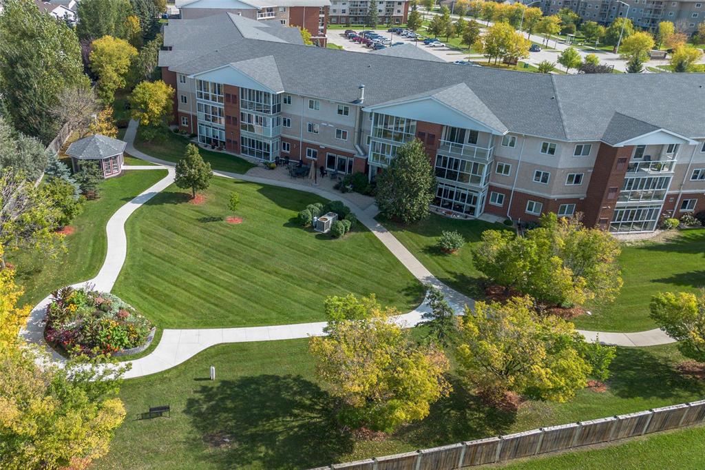 Enjoy this second floor suite in a terrific life lease environment. This incredible building has a real sense of community, with many long term owners, while still having your own independence, and privacy. A large eat in kitchen off the front entrance, with ample cupboard space, and a bonus built in bank of cabinets. Fantastic living room/dining room with updated laminate flooring, and a neutral decor. Patio doors leading to an enclosed balcony, with the most stunning views of the gardens, the pathway, and the brand new gazebo. Good sized primary bedroom with a four piece ensuite, and a second bedroom/den, with a second bathroom. The lease comes complete with an underground parking stall in the spacious parkade, complete with a car wash. The building has a library, fitness room, and huge main floor gathering room, that can be rented for any private functions, so you can still host your family. The rent can be reduced, with a deferred payment (listing agent can explain). Conveniently located, close to shopping, restaurants, and public transportation, this is a great place to call home.
