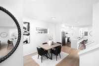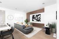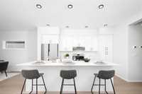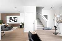 As you step inside you're greeted with natural light, a spacious foyer, ample closet space and a bright and airy office that flows seamlessly to the heart of the home. The open-concept kitchen, dining and living area features vinyl plank flooring, quartz countertops, stainless steel appliances and plenty of cabinetry. A large island provides extra workspace and is perfect for casual meals or entertaining guests.