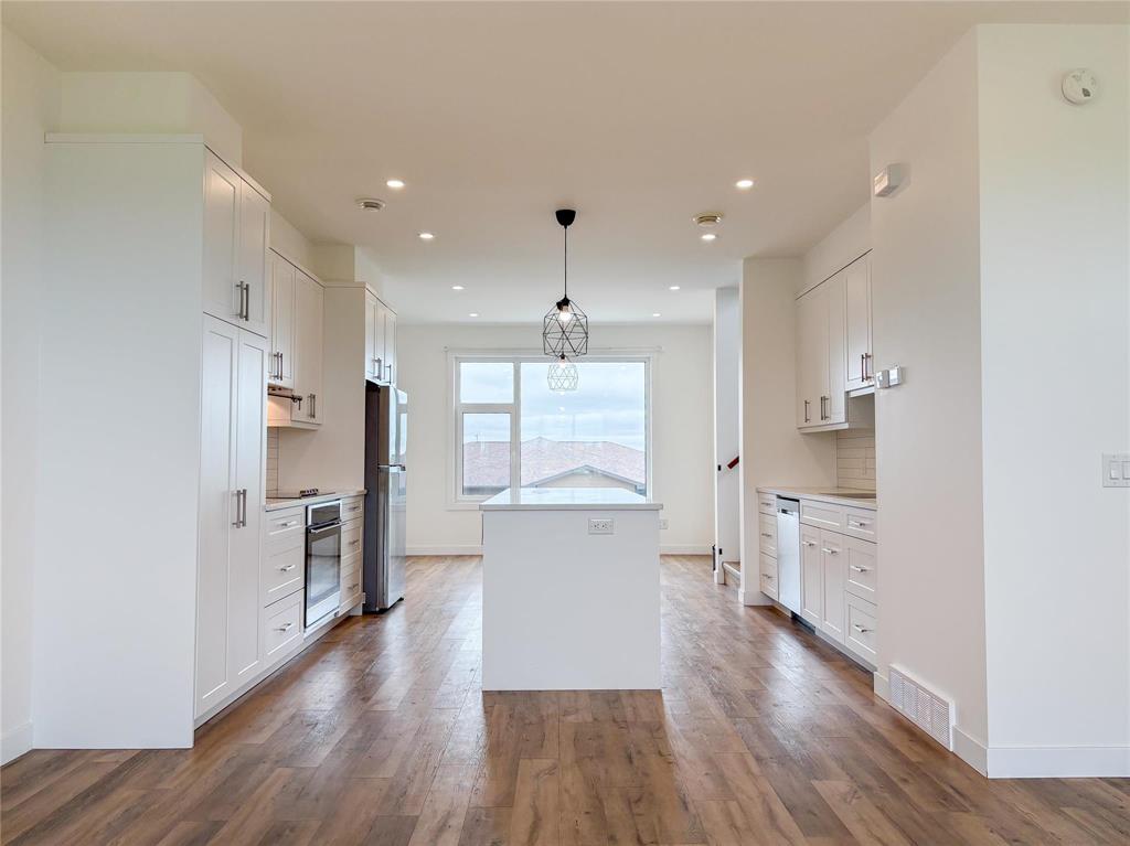 Modern Elegance Meets Everyday Comfort! Step into refined modern living w/ this impeccably designed 3-bed, 2.5-bath home, where style meets function in every detail. Boasting 9-ft ceilings & flooded w/ natural light from expansive European windows & doors, this home feels open, bright, & welcoming from the moment you enter. The clean, contemporary kitchen is a true showstopper—featuring crisp white cabinetry, stunning quartz countertops, a stylish tile backsplash, & an oversized 8-ft island perfect for entertaining. A dedicated cooktop area w, a convenient pot filler adds a luxurious touch for the home chef. Durable & beautiful LVP and tile flooring run throughout the home, top-tier soundproofing & insulation ensure peace and quiet in every room & low monthly hydro bills. Retreat to the spacious primary suite or relax outdoors on the generous 12x19' concrete patio surrounded by low-maintenance prairie landscaping. All of this next to expansive community green space. The oversized front driveway pad plus garage is both practical & pristine, complete w/ epoxy floors, in-floor heating, & space for storage/. Note: Images & videos are from a different unit & may vary.