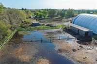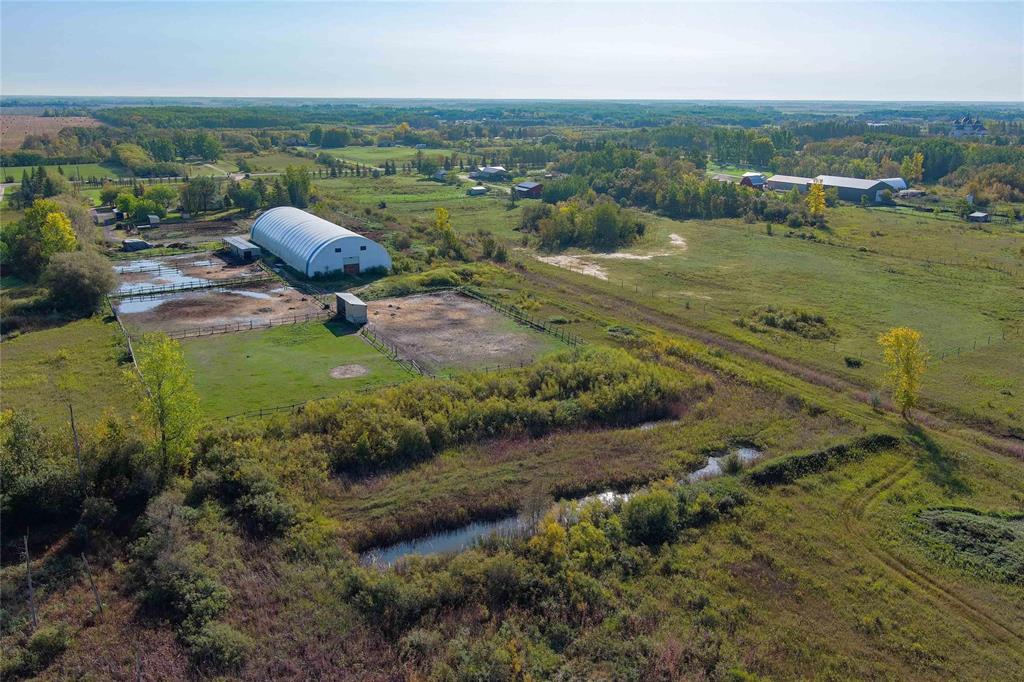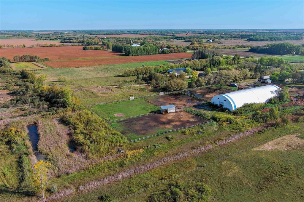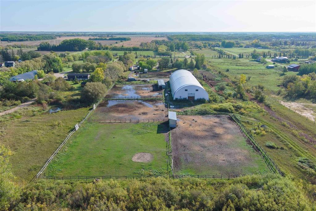 Dreaming of peaceful country living with room to roam? This 20-acre property offers just that plus a fully equipped equestrian setup, all only 15 minutes from Winnipeg! The well-cared-for bungalow spans 1400 sqft with 3 bedrooms and 1.5 bathrooms. Inside, you’ll find an open layout with generously sized bedrooms, a bright living area, and an inviting eat-in kitchen complete with quartz counters and custom wood cabinetry. For horse enthusiasts, the property includes a 4700 sqft heated and insulated 16-stall barn featuring a tack room, water room, office, and a spacious viewing lounge overlooking the 70’ x 160’ indoor arena. Perfect for training, shows, or even community events! Outdoors, there are 6 pens with shelters, 2 additional pens, a hay shed, 2 sheds, a double garage, plus trails, wooded areas, and two ponds. With so much to offer, this property is ready to bring your country lifestyle dreams to life!