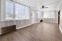 For Sale. Lovely Investment property with 3 bedrooms on main and 2 bedrooms on 2nd floor. Two separate entrances 2 separate hydro meters, 2 separate water meters, outdoor car plugs are connected to units as well. In-suite laundry both levels. Triple detached garage with independant 100 am power and monitored burglar alarm, plus central smoke and heat alarm system. Upgrades include roof insulation, shingles 2012, electrical, plumbing, paint, flooring and more. . Main floor heat is newer boiler system and upper level is baseboard heat. The main level is now vacant as renovations were just completed. Upper level is rented month to month at $1,200. per month + utilities. This property has been family owned for a very long time and pride of ownership shows.