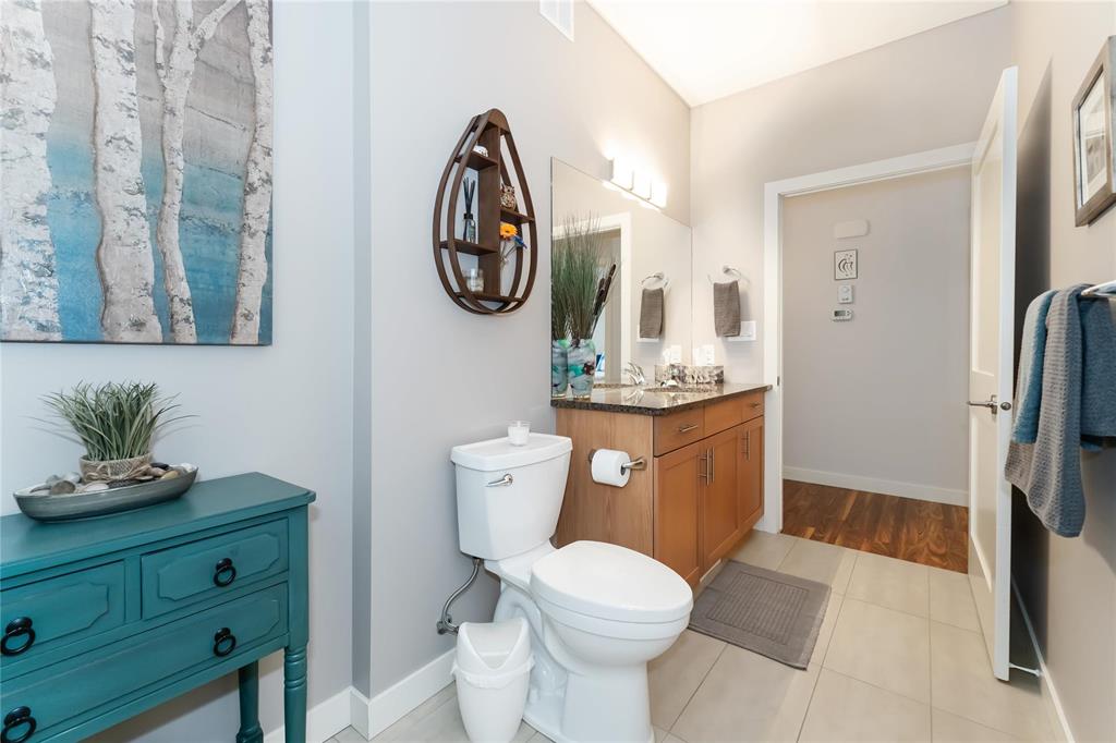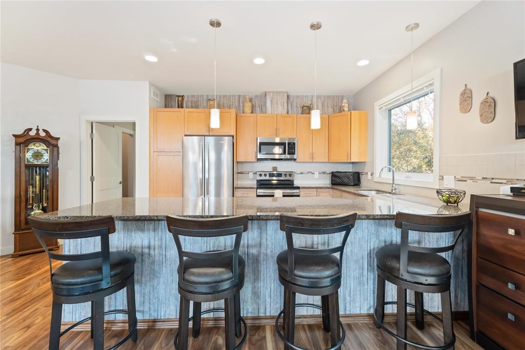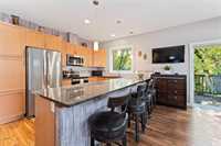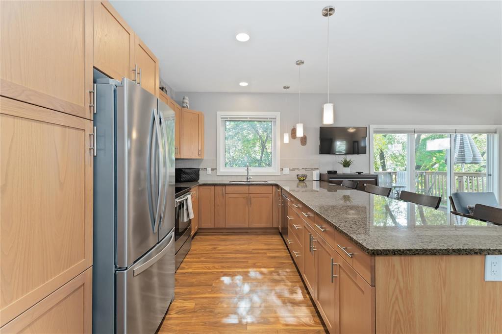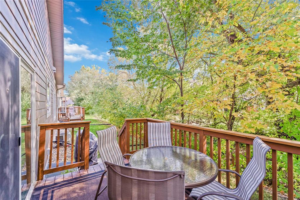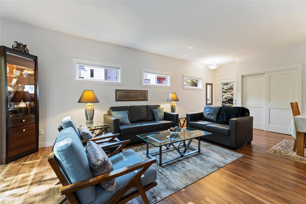 This well maintained, rare end unit location surrounded by trees provides you with a wonderful private experience. Get ready to fall in love with this spacious open concept design that's perfect for entertaining. The kitchen is a chef's delight with granite counters, tons of cooking space, huge island, ample cupboards, and stainless appliances. After enjoying a meal with friends in the adjacent dining area, relax into the grand living room for engaging conversation. Step out the large patio doors onto the deck with your morning coffee sitting under the canopy of trees. Primary bedroom fits a king bed, offers a modern ensuite & walk-in closet. Good-sized 2nd bedroom near main floor full bath & convenient laundry inside. Massive rec room is ideal for hosting the big game, or having fun playing pool (custom 5x9 high end table - negotiable). Plus nicely finished 2-piece bathroom. Tons of storage space in mechanical room, 2nd fridge, HRV system, hi-eff furnace & sump pump. Attached double garage fully insulated & drywalled. This property has been lovingly cared for. Convenient location near shops, transit & steps to Dakota Park. Easy visitor parking next to unit along fence.