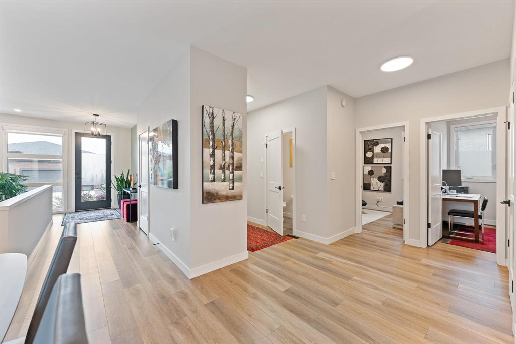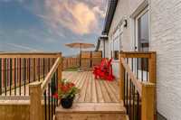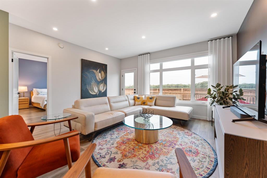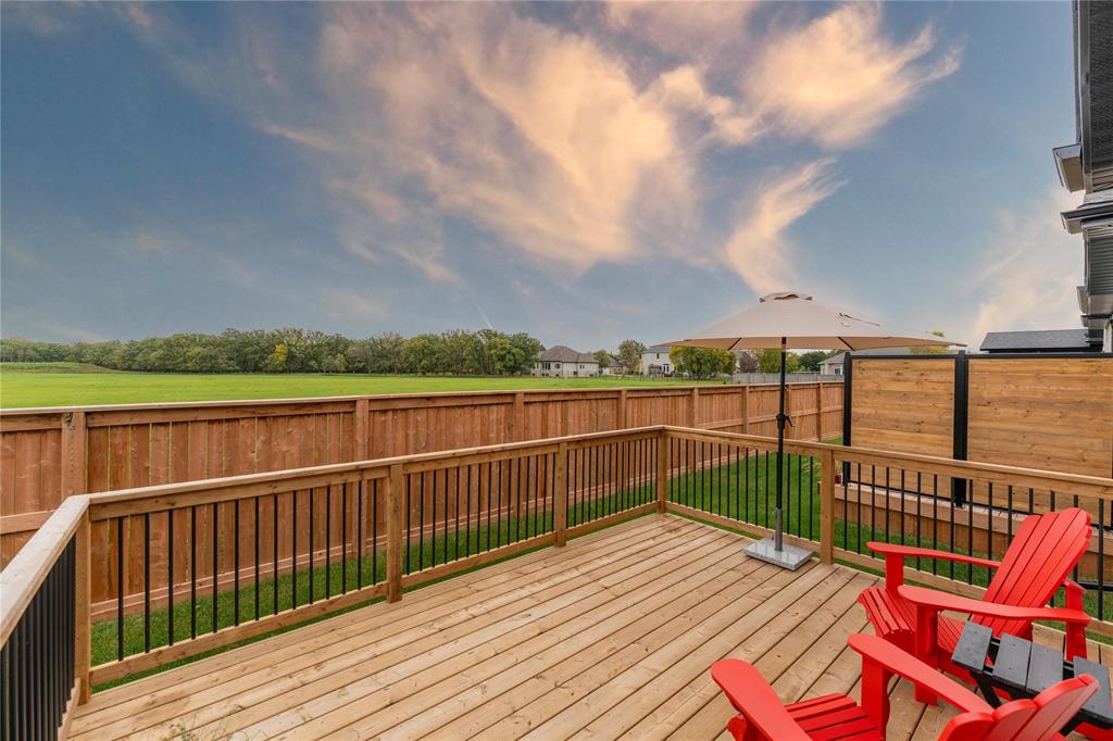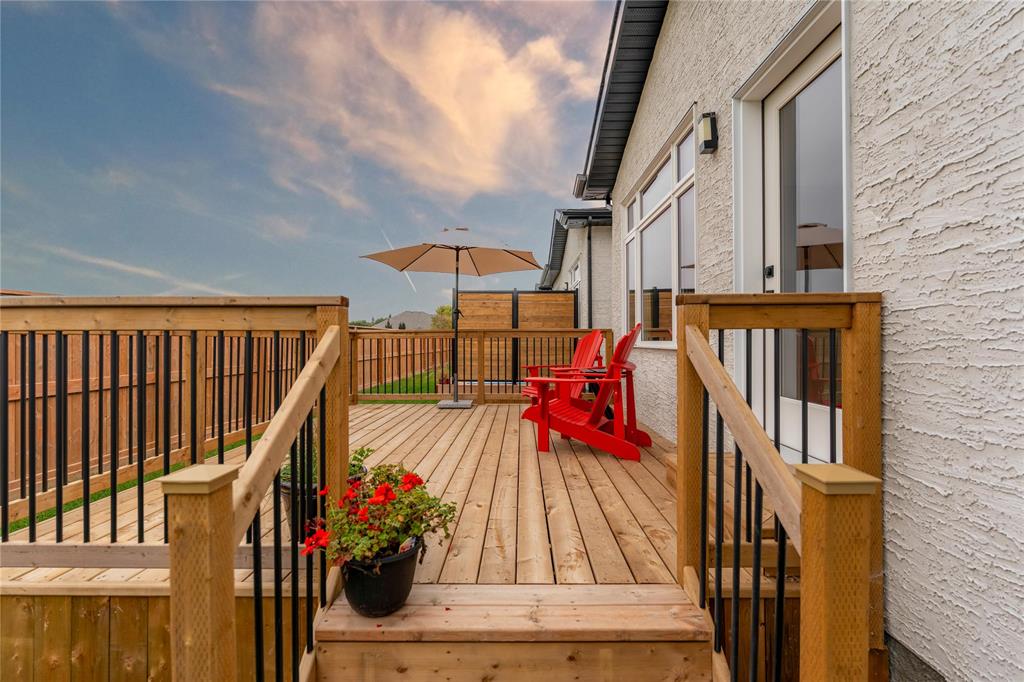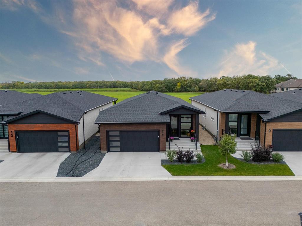 SS Friday Sept 26. OH Sun 1-3, Sept 28. Offers as received. Everything you want in a home - space style beauty comfort privacy community…easy living at its finest. Impressive bungalow condo w/large double attached heated garage built in 2023. Located just outside the perimeter offering city of Winnipeg services prairie vistas and low fees. Beautiful interior modern finishes and lots of upgrades from the original build. Open plan with high ceilings and natural light front to back. 1673 sqft 2 brs + DEN 2.5 baths all on the main flr. The spectacular kitchen has walnut tone cabinets, 10’ island, quartz counters, tile backsplash, quality appliances, seating and loads of storage. The dining and living rms flank the kitchen on each side providing generous room to entertain in, open yet separate spaces. The primary and 2nd br each have ensuite baths. Upgrades - heated & insulated garage, basement insulated & prewired for finishing, deck 16 x 12 feet, Miele dishwasher, Electrolux washer & dryer, pot lights added to the kitch & living areas, custom window coverings, feature wall paint. Ideally located in the complex. Pet friendly. Dramatic views of prairie vistas, forest backdrop & the wonder of prairie skies.