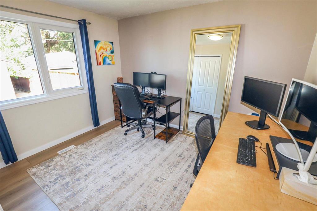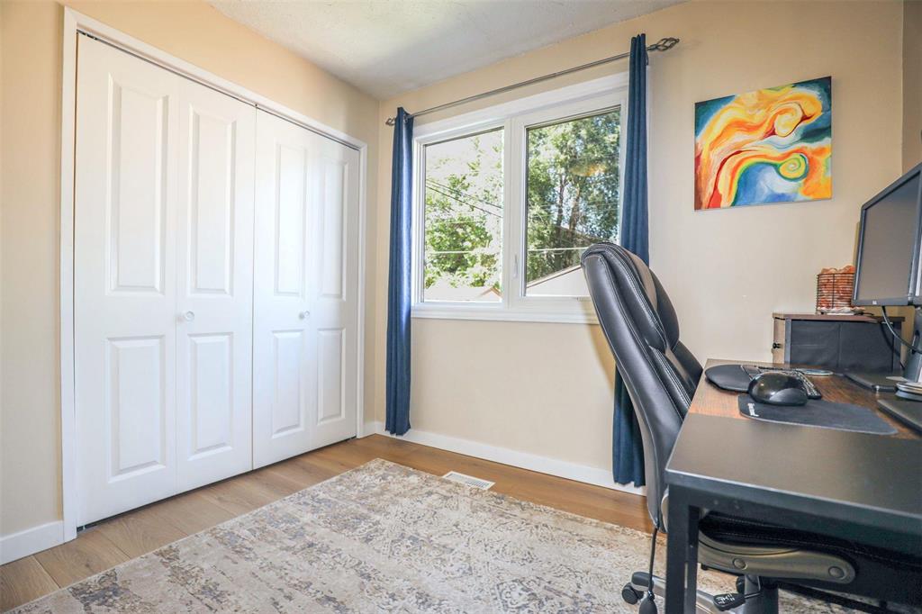 Viewings start now. Offers reviewed Mon Sept 29 at 8pm. OPEN HOUSE SUN SEPT 28th (3-5pm). LIKE A SHOW HOME! Attractive tastefully remod 2+1 bedroom, 2 bath bungalow featuring attractive curb appeal, new front vinyl siding & steps 2025, remod white kitchen 2024 with tall cabinets, breakfast bar, quartz counters, tile backsplash & 4 stainless steel appliances, 2 full baths, remod main bath 2022 with soaker tub & tile accents, newer waterproof laminate flooring, pot lighting, good size bedrooms, 2nd bedroom with organizer used as den actually larger than primary bedroom. Side door with stairway directly to finished basement ideal for rental features legal 3rd bedroom with newer egress window, modern drywalled recroom, 2nd kitchen with dark stain cabinets & 3 piece bath with shower. Laundry/utility area with new washer 2024. High efficient furnace, large electric hot water tank & central air. Further updates include tripane windows through main floor, basement windows 2021, entry doors 2022 & shingles on home 2021. Good size fenced yard with new sidewalk 2025, fencing 2021, shed, firepit & 20x23 ft double garage with updated car door & extra parking. Ultra convenient to all amenities. A must to see!