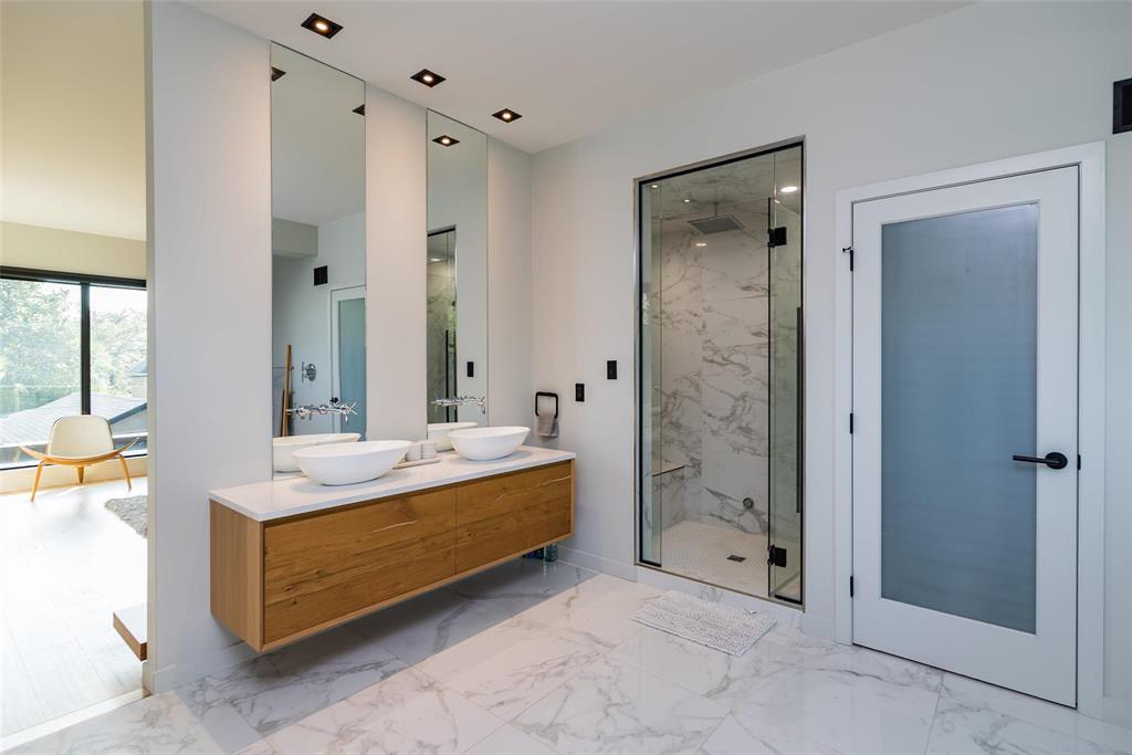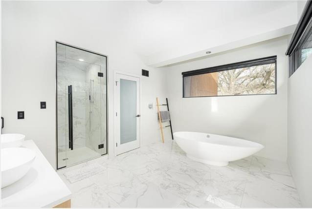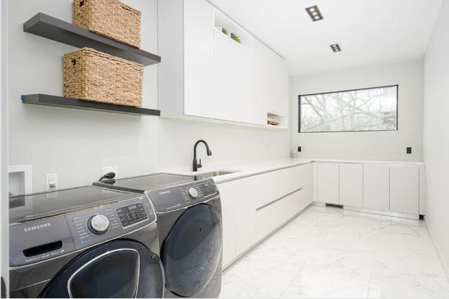 STUNNING, MODERN, CONTEMPORARY, PRESTIGIOUS WELLINGTON CRESCENT LOCATION!!. This 4300 sq ft home offers luxury living at its finest. With 4 bed rooms, each featuring its own ensuite and 4 and half baths. Engineered hardwoods and porcelain tiles with heated floors, floor-to-ceiling fiberglass Duxton windows and a double sided fireplace with cortex steel exterior. Gourmet kitchen with 10 ft waterfall island is a chef's paradise, sleek granite and quartz countertops, custom dual-tone Italian cabinetry, and premium Thermador appliances columns for a fridge, freezer, and wine cooler, plus a built-in microwave, wall oven combo, and warming drawer. Sunken formal dining room, office area/library & spacious family room . A custom reclaimed brick feature wall spans the main level and entertainment loft area, which includes a bar and a three-piece bath to complement the pool area. The spacious master BR features a massive walk-in-closet& a luxurious 5-piece ensuite with a steam shower & a ceiling rainfall to tub. Upstairs, you'll find 3 large bedrooms with ensuites & huge laundry room with custom cabinetry. Step outside to enjoy the 18'x 36' inground UV pool, completing this exceptional property. ACT FAST!