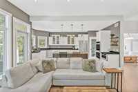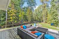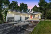 Built in 2011, this bright & spacious bungalow offers luxurious living space, nestled on a beautifully treed & private lot right on Grand Pines Golf Course. This property provides the perfect balance of seclusion and convenience, minutes from beaches, restaurants, shops & world-class golf. You'll love the gourmet kitchen w granite countertops & built-in double oven. The expansive living area boasts maple hardwood floors throughout, 10ft ceilings & triple-pane windows that flood the home w natural light while offering breathtaking views of the backyard forest. Enjoy three spacious bedrooms, including a primary suite w ensuite & WIC. The 33x23 insulated garage offers 12ft ceilings & custom shelving. Enjoy the outdoors from the covered front porch, side deck w pergola, rear deck, or fire pit. As a bonus, the vacant treed lot next door is included, providing extra privacy or endless opportunities for future development. Loads of updates: HWT '22, sump '21, ovens & cooktop '24, countertops '24, new closet shelving, and new leaf filter system to eaves just added ($20k). This is a rare, once-in-a-lifetime opportunity to own a private retreat or year round home, only 1 hr from the north perimeter.