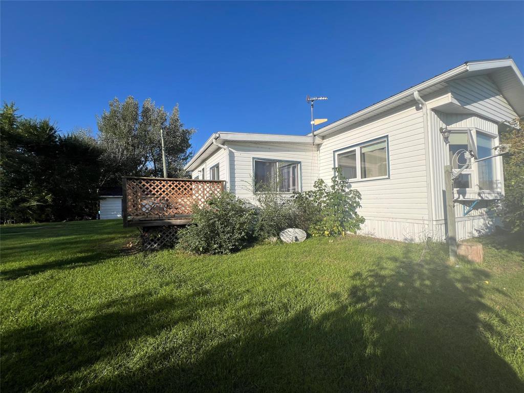 Huge Lot in quaint town of Plumas, mb ….walking distance to schools, skating rink, curling rink, baseball diamonds. Mobile home offers 2 bedrooms but could easily be turned back into a 3 bedroom with simply adding the one wall that was was taken down to create one large room. Nice size addition 12x20 for extra entertaining space, craft room or home office. There is a 28x32 garage that offers parking for 2 vehicles and a large workshop, additional garden shed included. Recent plumbing upgrades and new landing and stairs at back door. There is newer laminate flooring throughout, all appliances included. At this price...home ownership is very affordable...less than rent!! There is a metal roof on the mobile home, additional insulation was added to the home when Vinyl siding was previously installed. Call your Realtor and book your appointment today...a quick possession is available!!