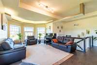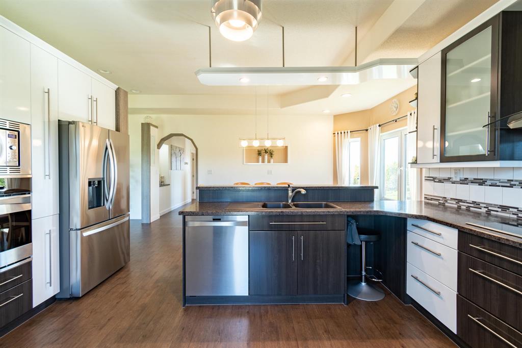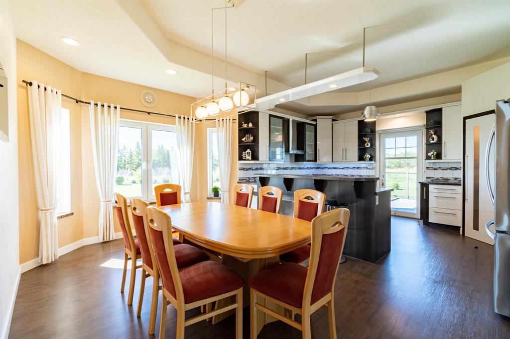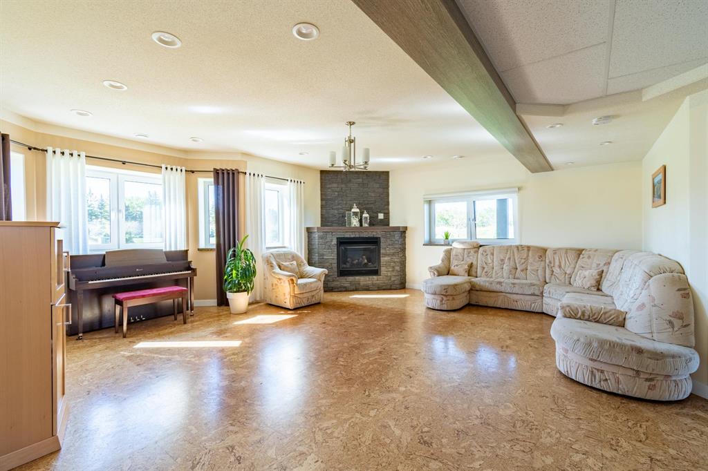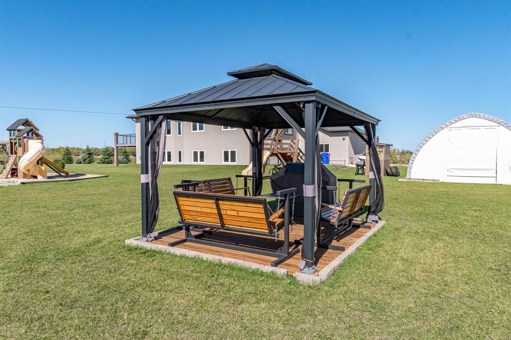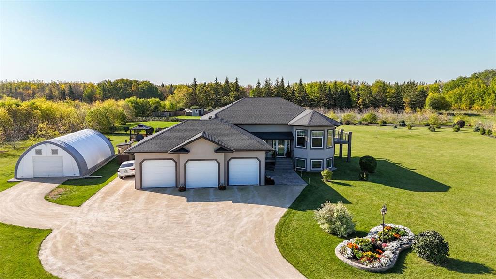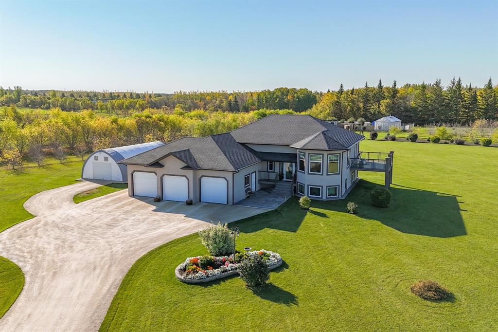 OTP Oct 9 | Flemming Family Living! WOW! This immaculate custom built home with pristine 4 acre property is available for the very first time. The sellers thought of everything while designing & creating this spacious, luxurious, yet family focussed abode. Step inside to your spacious landing with mudroom & access to garage. Up the steps is a gorgeous living room, bright dining space & stunning kitchen with breakfast bar, stainless steel appliances, walk-in pantry & access to deck. Lrg Primary bedrm ft walk-in closet & 3pc ensuite. 2 more nice sized bedrms & 4pc bath complete the main flr. Downstairs feels like an extension of the upstairs with the huge windows letting in tons of sunlight. Family room with cork floors & stone face gas fireplace, 3 big bedrooms, a 4pc bath & a 3pc bath, laundry, utility & storage! Ins, heated 36x26 3AT grg with 2pc bath. Outside, the yard & landscaping are truly remarkable. Trees planted with care, methodically spaced apart — perfection. Gazebo, kids play area, huge garden, dog run, + a 20x40 tent style garage/shop. Greenhouse, chicken coop, etc, are negotiable. Amazing location just 5 mins to 59. So bring the whole family & embrace country living here at 320 Flemming!