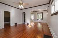 Step inside to a bright and stunning front sunroom – the perfect spot to enjoy your morning coffee or unwind with a book. The main floor showcases original hardwood floors, arched doorways, and inviting living spaces that balance history with comfort.