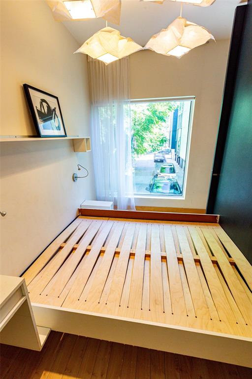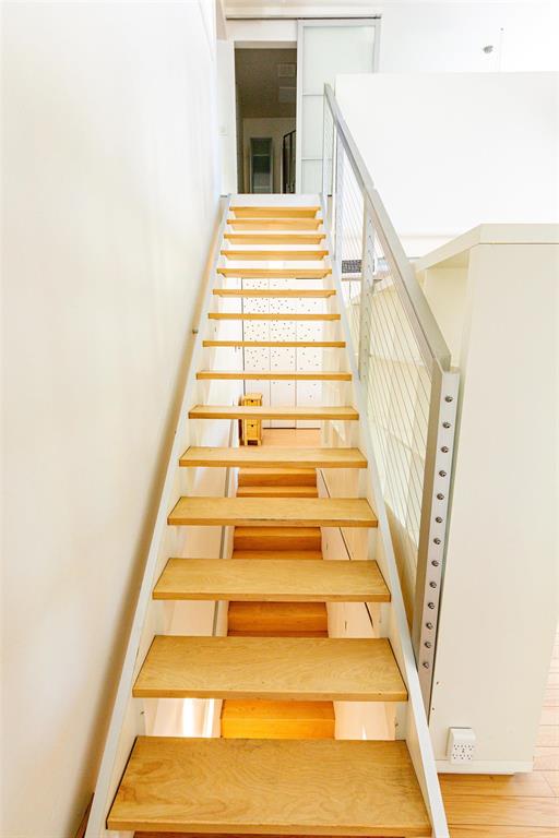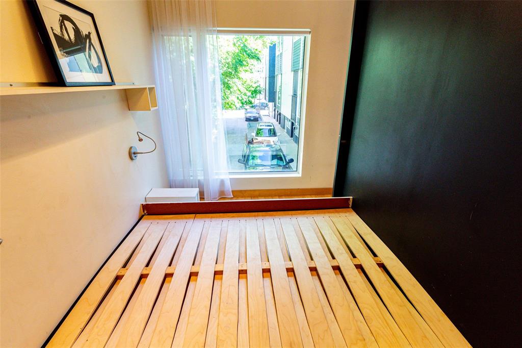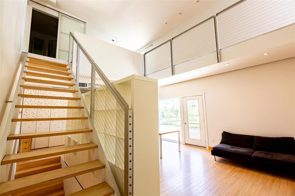 Patio doors off of upstairs bedroom to a large private balcony nestled in the treetops, great downtown vibe!