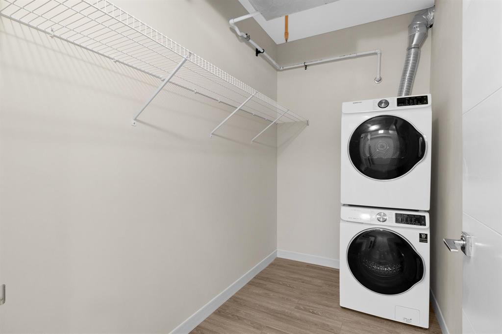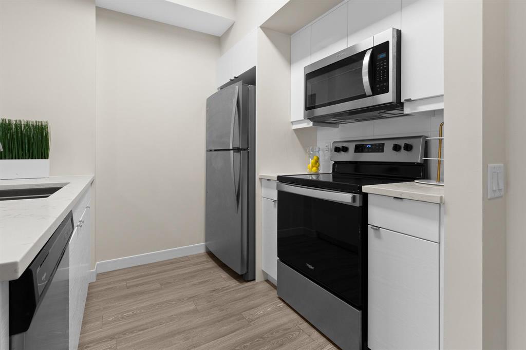 Show Suite Sun 2:30-4:30 |Discover affordable living in the desirable Crocus Meadows neighbourhood! This well-maintained 1 Bedroom, 1 Bathroom condo offers 661 sq/ft of functional and stylish space, perfect for first-time buyers, downsizers, or those seeking a smart alternative to renting or purchasing a starter home. The "Rose" plan features high-quality finishes, including quartz countertops, a ceramic tile backsplash, luxury vinyl plank flooring, and stainless steel appliances in a modern, open-concept layout with an island kitchen—ideal for cooking and entertaining. Enjoy the bright, welcoming atmosphere provided by windows and a south-facing covered balcony. The unit offers practical conveniences such as in-suite laundry with a washer & dryer, plug-in parking, and window coverings. Low condo fees also grant you access to a 4,000 sq/ft clubhouse featuring a well-equipped fitness center, a cozy billiards lounge, and a versatile main-floor common room with a full kitchen and dining area, perfect for hosting private gatherings. Pet-friendly for up to two pets under 35 lbs, this condo provides both comfort and flexibility along with an opportunity to start building equity.