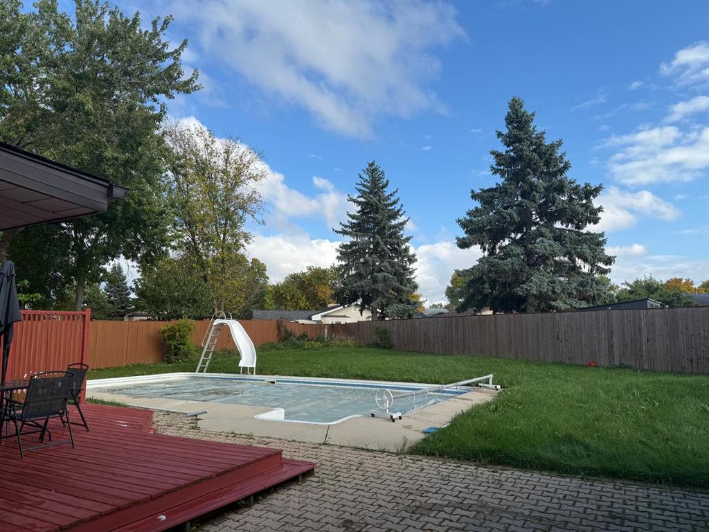 Large pie-shaped lot with privacy fence