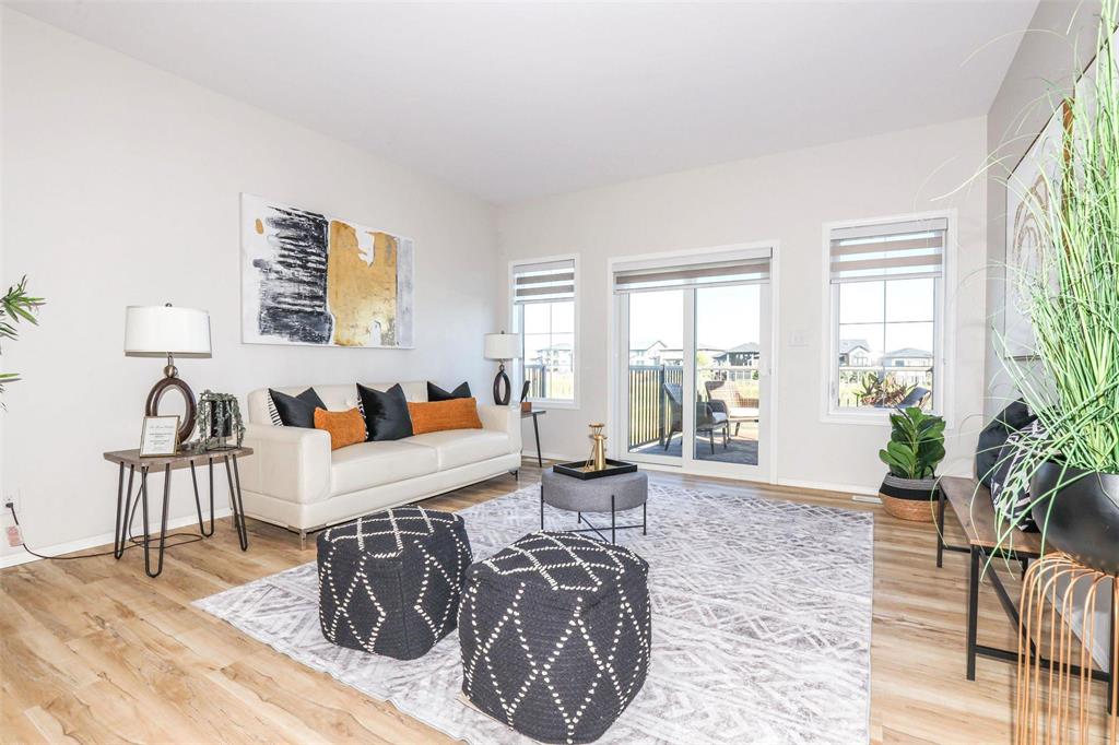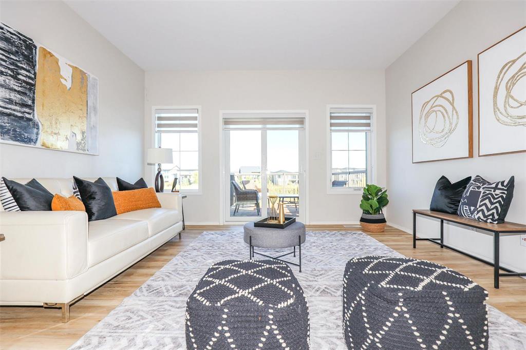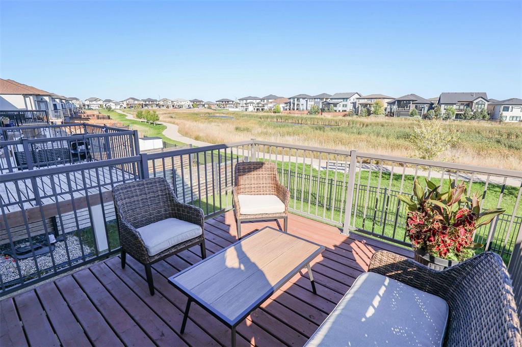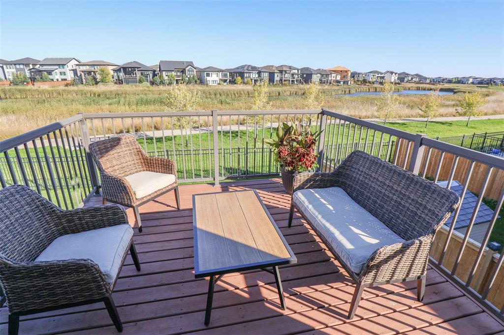 Bridgwater Trails with Lake Views!! This BEAUTIFULLY designed 1,621 sq. ft. semi-attached home offers a walkout basement and a desirable location backing onto the lake with a 11’ x 12’ deck overlooking the water. The main floor features a bright, open-concept layout with 9’ ceilings, and a well-designed kitchen complete with a walk-in pantry, oversized island, pot drawers, pendant lighting, and recessed pot lights. The dining area accommodates a full-sized table and includes a large window with lake views. Additional main floor features include two coat closets and a spacious 2-piece bath that is wheelchair accessible. Upstairs, the primary bedroom offers an 8’ x 5’ walk-in closet, while the conveniently located laundry room provides ample space for folding and ironing. Built on a piled foundation, the home also includes tri-pane windows and a full unspoiled walkout basement with direct access to the beautifully landscaped backyard and lake. Prime Location jsut steps to Bridgwater Centre, shopping,transit,walking trails and the new Altea Active Winnipeg Book your showing TODAY!!
