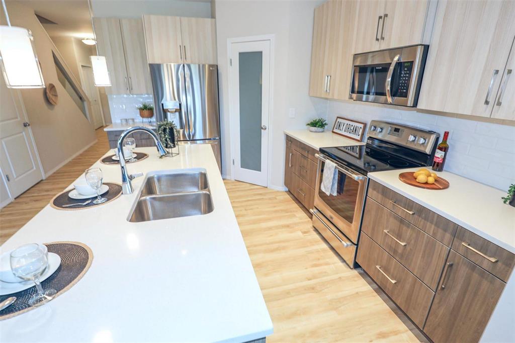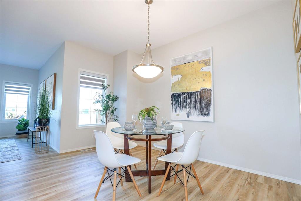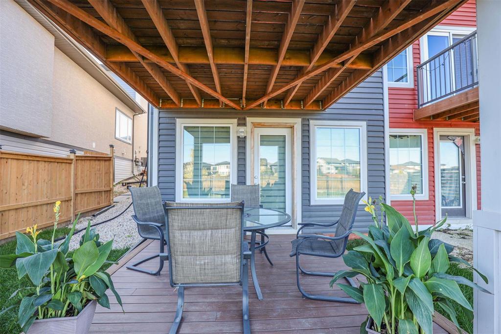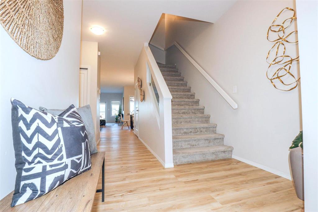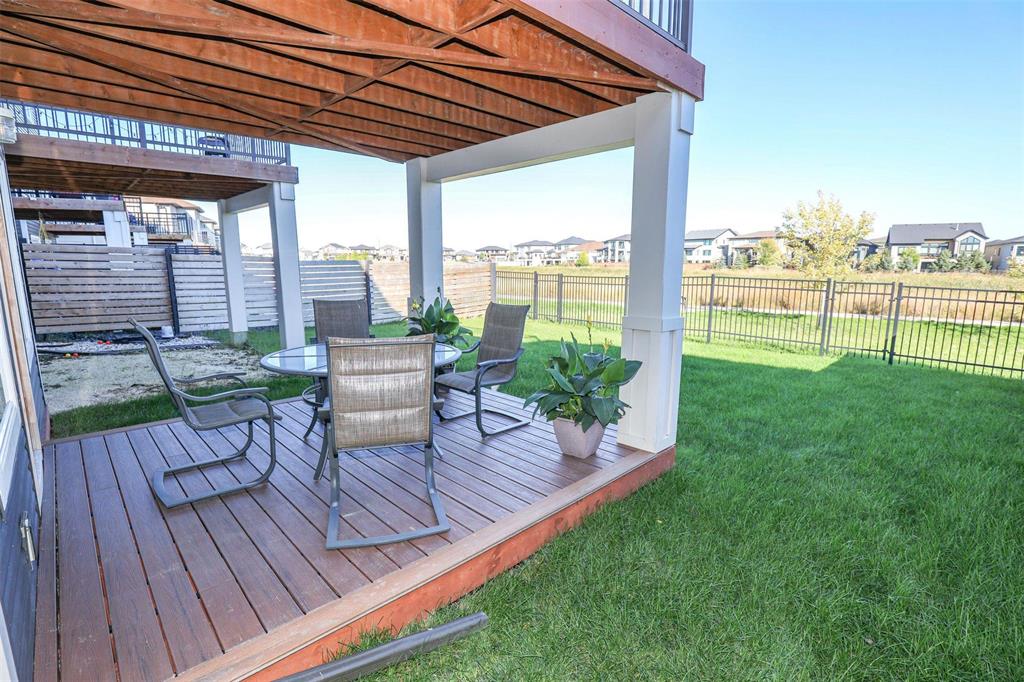 Bridgwater Trails with Lake Views!! This BEAUTIFULLY designed 1,621 sq. ft. semi-attached home offers a walkout basement and a desirable location backing onto the lake with a 11’ x 12’ deck overlooking the water. The main floor features a bright, open-concept layout with 9’ ceilings, and a well-designed kitchen complete with a walk-in pantry, oversized island, pot drawers, pendant lighting, and recessed pot lights. The dining area accommodates a full-sized table and includes a large window with lake views. Additional main floor features include two coat closets and a spacious 2-piece bath that is wheelchair accessible. Upstairs, the primary bedroom offers an 8’ x 5’ walk-in closet, while the conveniently located laundry room provides ample space for folding and ironing. Built on a piled foundation, the home also includes tri-pane windows and a full unspoiled walkout basement with direct access to the beautifully landscaped backyard and lake. Prime Location jsut steps to Bridgwater Centre, shopping,transit,walking trails and the new Altea Active Winnipeg Book your showing TODAY!!