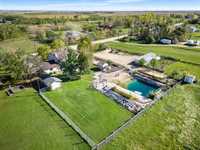 Opportunity to own just under 5 acres within city limits! This versatile property is ideal for animal lovers, featuring corrals, pastures, & shelters—perfect for horses, sheep, goats. There's also a chicken coop w/ an attached sunrm to keep your flock warm in the winter. A central water house sits in the heart of the yard. The current owner has even researched building a natural swimming pond—imagine your own private beach! This solidly built 2stry home offers over 2,000 sq ft w/ 6 bedrms, or 7 if you convert the main floor office. The main floor offers hardwd flrs, two living rms, a dining area, and a beautifully renovated kitchen w/ quartz countertops. The great room has a built-in wall unit w/ gas FP. Upstairs are 3 bedrms, incl generous primary w/ a 4 pc ensuite & garden door to a balcony overlooking the west-facing acreage—perfect for taking in the breathtaking sunsets. The basement offers a rec rm, 3 add'l bedrms, & a 3 pc bathrm. Outside, enjoy your own private retreat w/ an 8-person hot tub on the deck, a large fire pit, and patio areas for entertaining. Updates incl: Kitch '23, Shingles '23, HWT '24, High-eff furn '14, water filtration system, c/vac