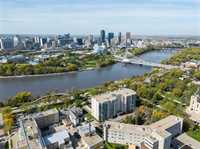 Welcome to 102-500 Taché Avenue! This 1,352 sq ft main-floor condo in historic St. Boniface offers 2 bedrooms + den and 2 baths (incl. ensuite) situated with views of the Red River, Provencher Bridge and the Human Rights Museum, steps from St. Boniface College, Provencher shops, and a short scenic walk to the Forks. This unit combines convenience with style, built with concrete and steel, which provides each unit with exceptional soundproofing. Enjoy 9 ft ceilings, floor-to-ceiling windows, hardwood floors, and updated maple kitchen cabinets. The unit’s private rear entry, accessible off the parking lot, offers added convenience, while underground heated parking ensures a stress-free winter. The common spaces offer a convenient gathering area with full kitchen, fireplace, sitting area and dining room. 500 Taché is one of Winnipeg’s most sought-after addresses in Winnipeg's condo market. Well managed, exceptionally well built with a great community of owners. Call today to book a private viewing!