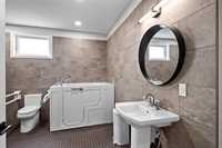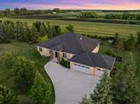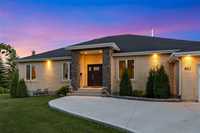 Welcome to this exquisite 2,583 sq. ft. residence, masterfully crafted by Irwin Homes and set on a beautifully landscaped 2-acre estate in the highly sought-after community of East St. Paul. The main floor showcases 12' and 9' ceilings, rich oak wainscoting, and a spectacular fireplace in the great room. The gourmet eat-in kitchen features granite countertops, a large island, and top-tier built-in appliances. A bright office/bedroom, second bedroom, and a 4-piece bath offer flexible and functional living. The spacious primary suite is a true retreat, complete with a newly renovated 4-piece ensuite. The finished lower level offers a large rec room with a wood-burning stove, full bathroom, and two additional bedrooms—ideal for guests or extended family. Premium upgrades include a new well and pump (2022), high-efficiency Amana furnace (2024), and a full emergency generator system. Outside, enjoy the serenity of a private lanai, granite waterfall feature, patio, firepit, irrigation system, and an insulated triple garage. A rare offering of refined craftsmanship, modern comfort, and timeless design.