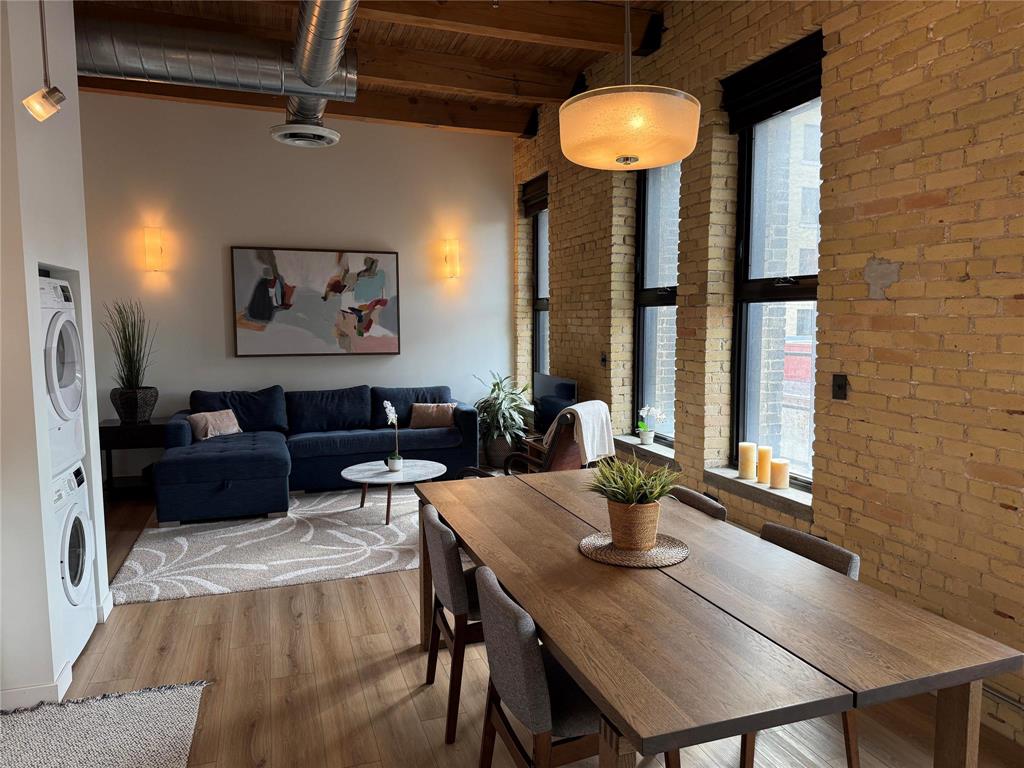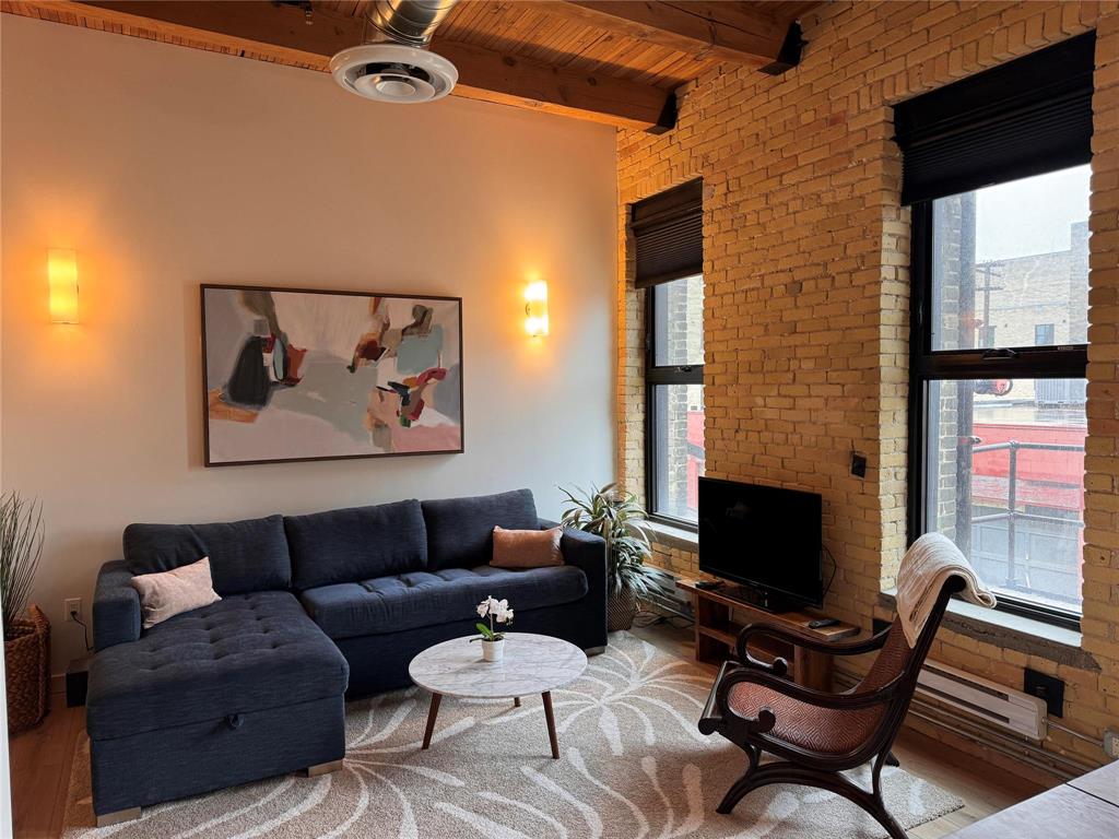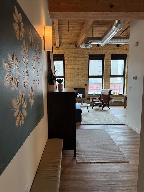 Enjoy a downtown experience at this centrally located condo in the heart of the East Exchange district. This 2nd floor unit offers exposed brick, character beams and wooden ceiling. Additional features include new laminate flooring in the living area as well as a new shower in the bathroom. Building includes secure entrance, elevator and storage area.