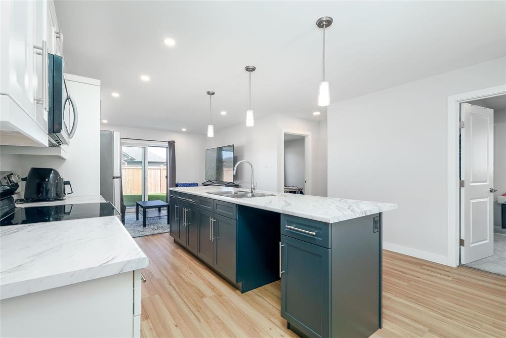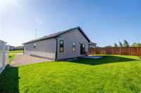 The yard is nicely landscaped with a concrete patio off the living room, designed for minimal care while still giving you space to enjoy the outdoors. Inside, you’ll find a well-kept home with thoughtful finishes and practical layout. The insulated single garage provides secure parking and extra storage.