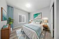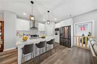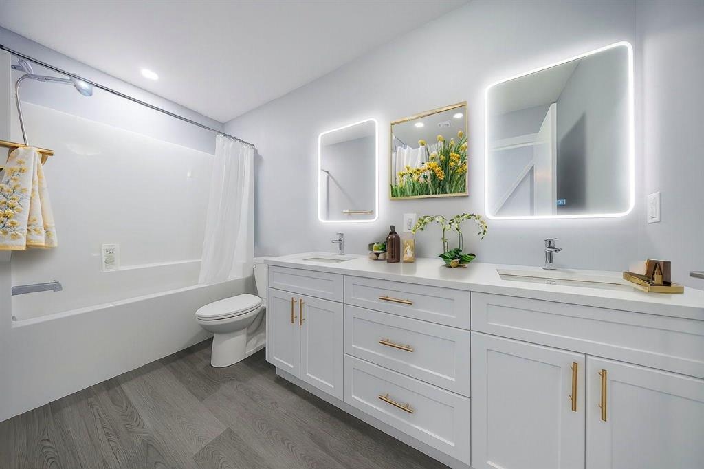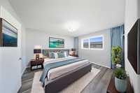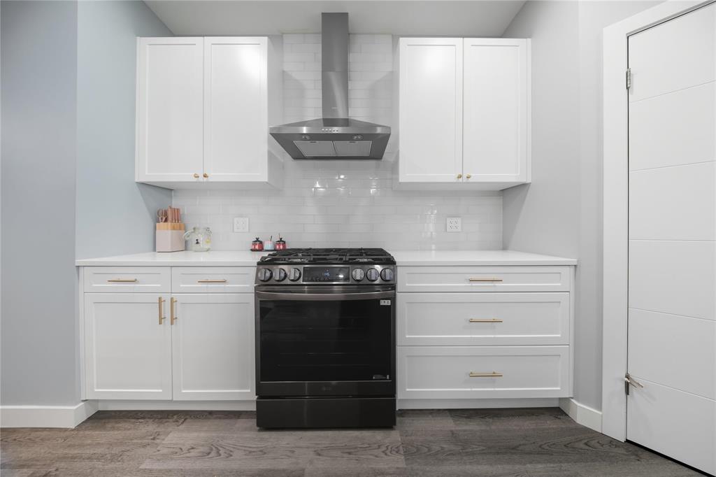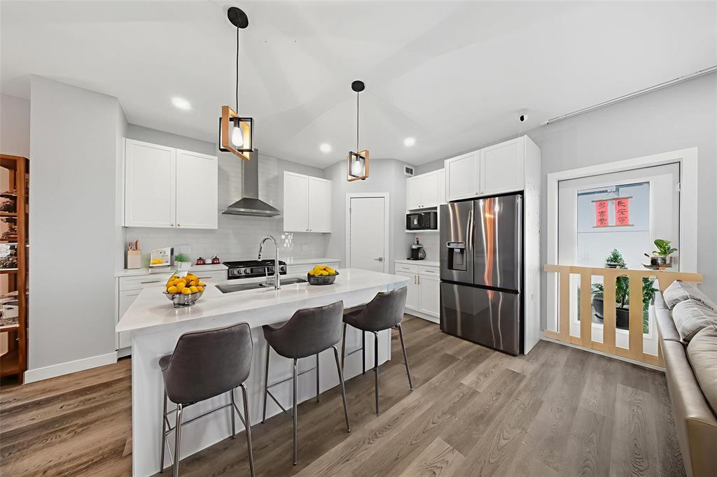 A MAIN FLOOR bedroom and full bath —perfect for guests or extended family. The modern kitchen is equipped with a gas stove, quartz countertops, tile backsplash, raised upper cabinets, and high-end appliances, all set beneath soaring 9-ft ceilings that add to the open, airy feel of the main floor. UPSTAIRS, the elegant primary suite boasts a walk-in closet and private ensuite, while the second bedroom also features its own walk-in closet. A third bedroom, additional full bathroom, and convenient upper-level laundry complete the upper floor. Thoughtful upgrades include LED mirrors in all bathrooms, brass handles on all cabinets, and countless high-end finishes throughout. Situated in a quiet, family-friendly neighborhood close to school, park, and amenities, this home offers the perfect blend of style, space, and convenience—truly a must-see!
