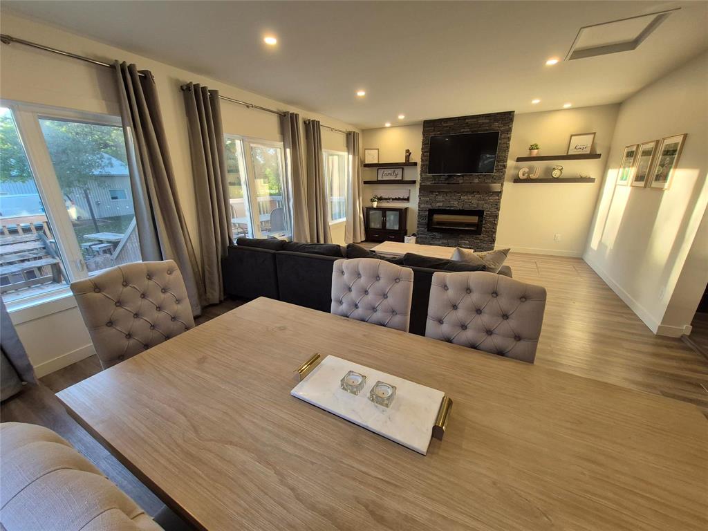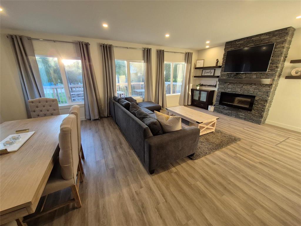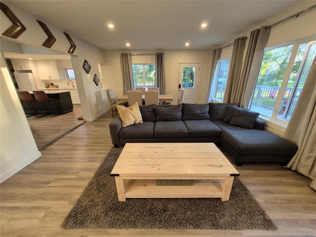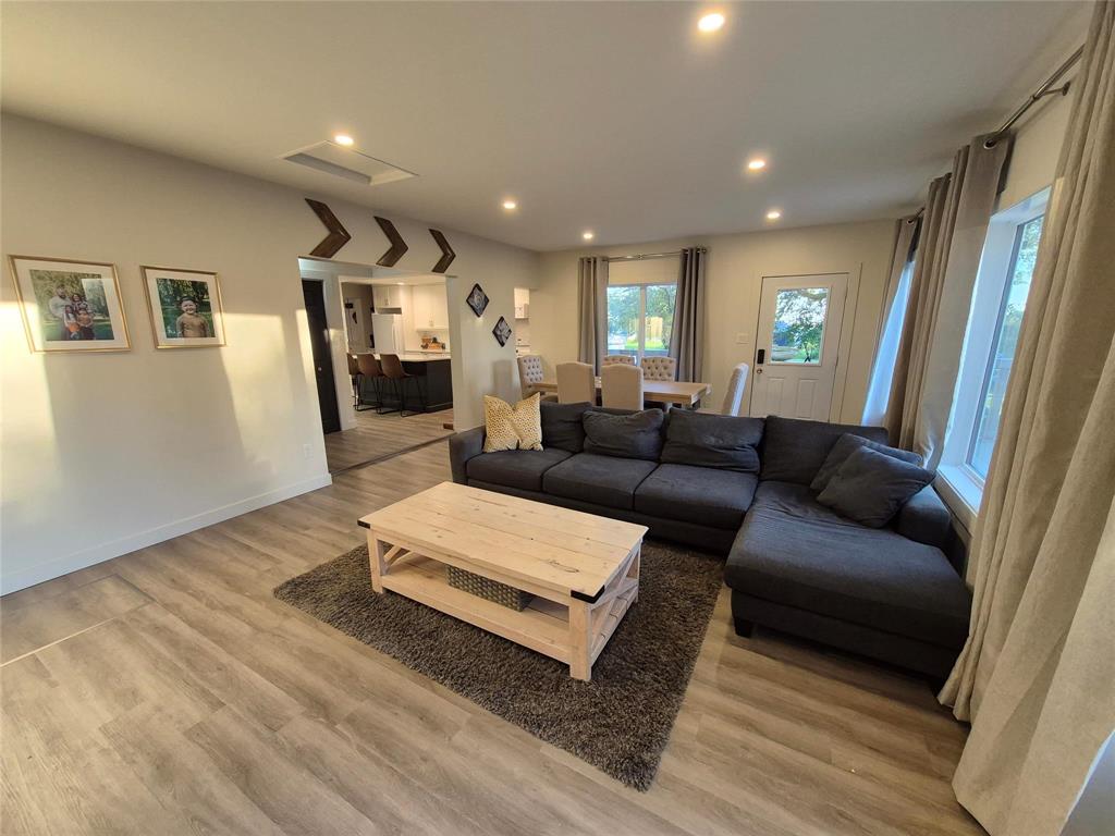 Welcome to this charming home that blends character, comfort & modern updates. With 3 bedrooms and 2 bathrooms, this home is perfect for families, downsizers or anyone looking for a move-in-ready retreat. Step into the spacious foyer with built-in storage-the perfect drop zone for busy lives. The main floor features two cozy bedrooms and a full bath. The highlight of the home is the large addition that creates a stunning open-concept living space, complete with a beautiful brick fireplace flanked by floating shelves, a bright dining area, large windows overlooking the wraparound deck & treed yard. The updated kitchen is a dream! Crisp white cabinetry is paired with a two-tone island, quartz countertops, soft-close drawers & a dedicated coffee bar station. Upstairs, you'll find a spacious primary bedroom with its own bathroom and a cozy sitting area-ideal for relaxing with a book or your morning coffee. The lower level offers even more space with a rec room area, laundry, mechanical room & under-the-stairs storage. Outside, enjoy the serenity of your tree-lined lot featuring a wraparound deck, firepit area, single detached garage & two storage sheds.