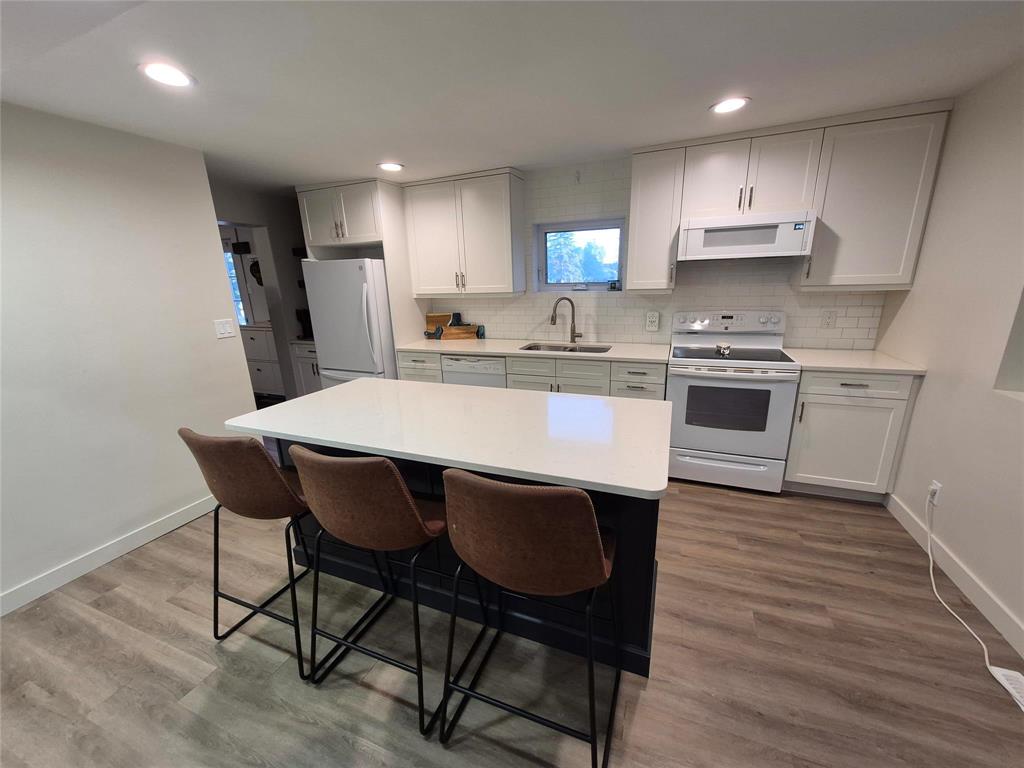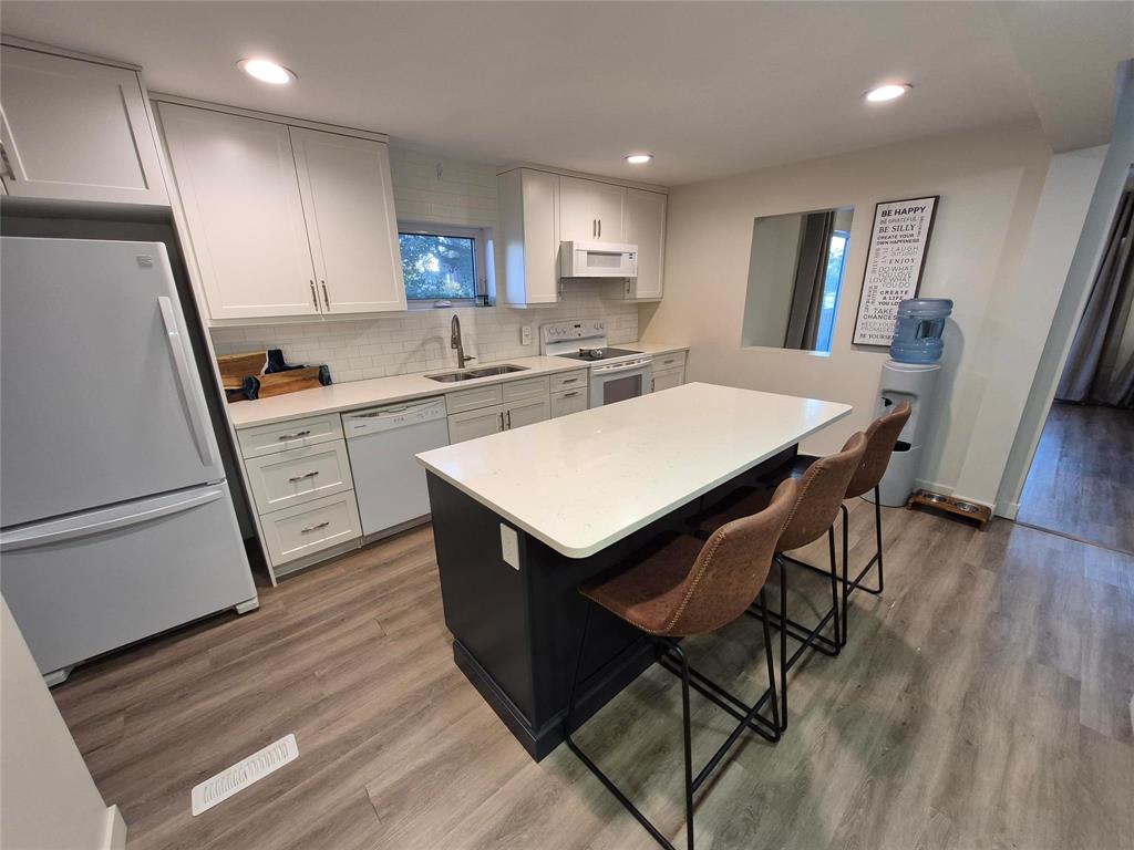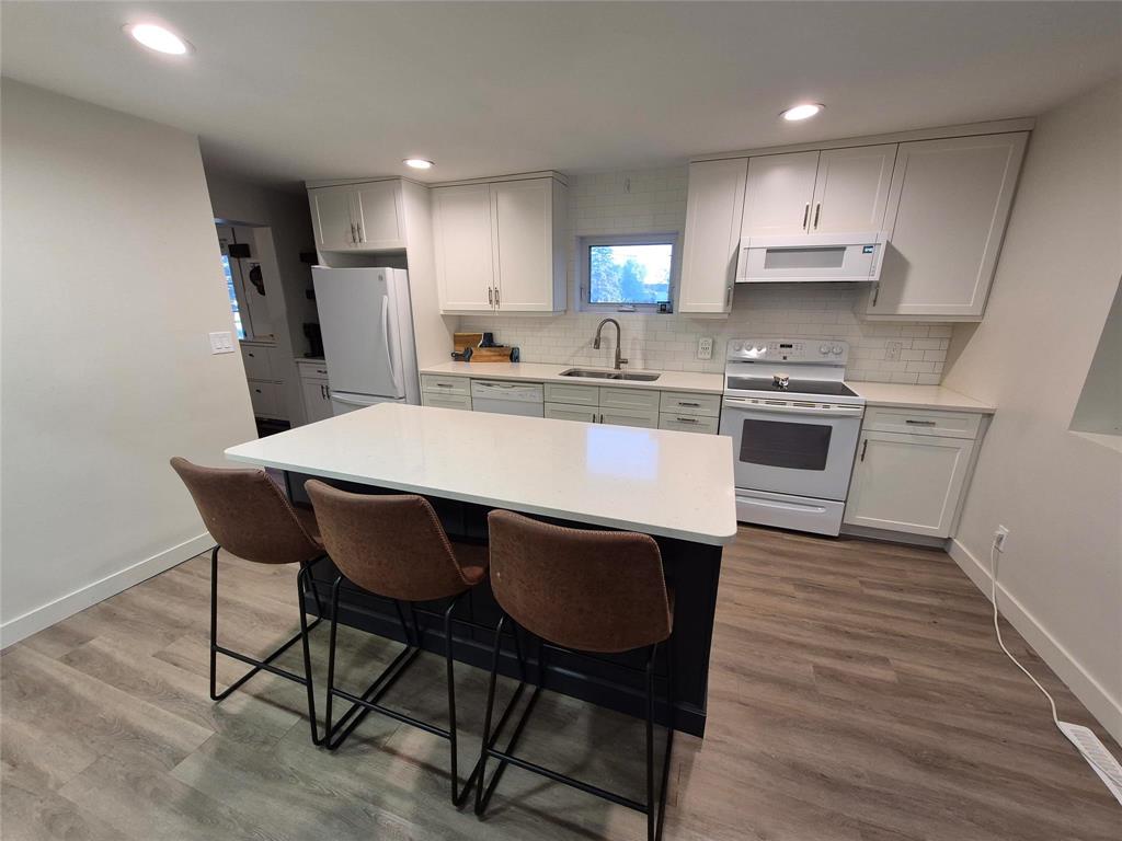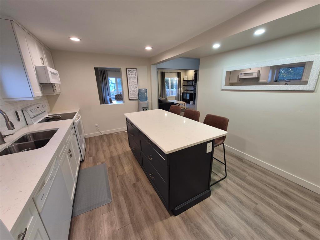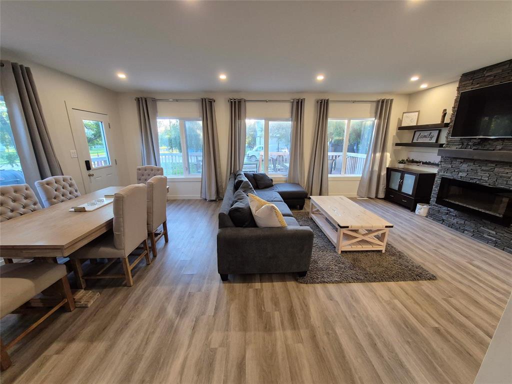 Welcome to this charming home that blends character, comfort & modern updates. With 3 bedrooms and 2 bathrooms, this home is perfect for families, downsizers or anyone looking for a move-in-ready retreat. Step into the spacious foyer with built-in storage-the perfect drop zone for busy lives. The main floor features two cozy bedrooms and a full bath. The highlight of the home is the large addition that creates a stunning open-concept living space, complete with a beautiful brick fireplace flanked by floating shelves, a bright dining area, large windows overlooking the wraparound deck & treed yard. The updated kitchen is a dream! Crisp white cabinetry is paired with a two-tone island, quartz countertops, soft-close drawers & a dedicated coffee bar station. Upstairs, you'll find a spacious primary bedroom with its own bathroom and a cozy sitting area-ideal for relaxing with a book or your morning coffee. The lower level offers even more space with a rec room area, laundry, mechanical room & under-the-stairs storage. Outside, enjoy the serenity of your tree-lined lot featuring a wraparound deck, firepit area, single detached garage & two storage sheds.