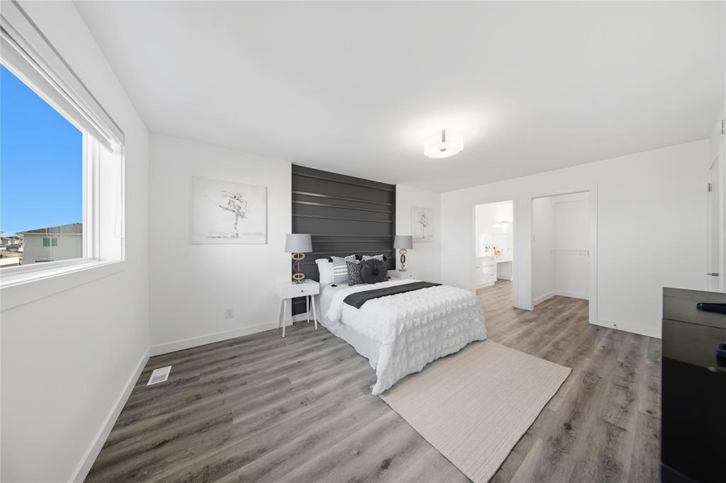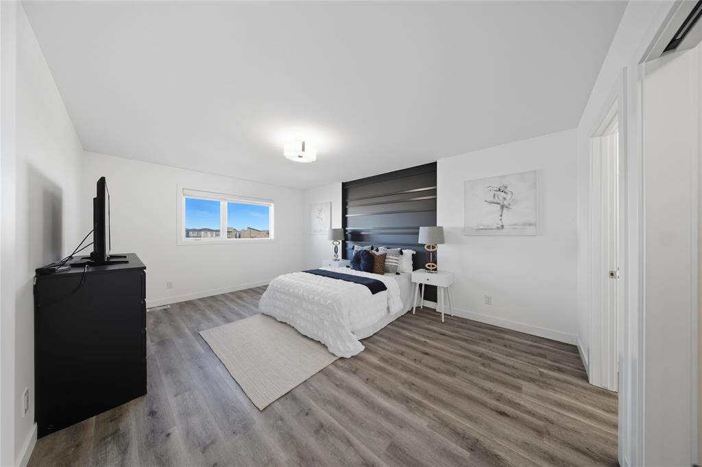 SS Now, Offers as received. Welcome to this stunning 4 bedroom, 3 bathroom home in the desirable Prairie Pointe neighbourhood! The main floor offers a bright and spacious open to above living room with large windows that bring in plenty of natural light, a beautiful modern kitchen, and a convenient bedroom with a full bathroom. Upstairs, you’ll find three generously sized bedrooms, including a luxurious primary suite with a double vanity, standalone tub, and glass shower. A common full bathroom serves the other bedrooms, and the upper floor also features a laundry area for added convenience. This home is built on a lookout lot with larger basement windows and offers a beautiful lake view, making the evenings extra special as you enjoy the serene surroundings. The double attached garage adds both functionality and curb appeal, while the quiet, family-friendly neighbourhood enhances the overall lifestyle. Whether you’re hosting guests, enjoying family time, or simply relaxing in your open-concept living space, this home is designed for modern living. With schools, parks, shopping, and other amenities just minutes away, it’s the perfect blend of comfort and convenience.