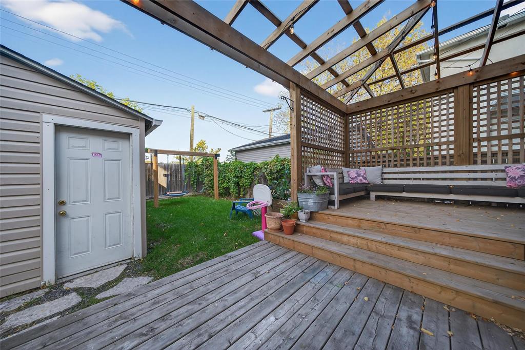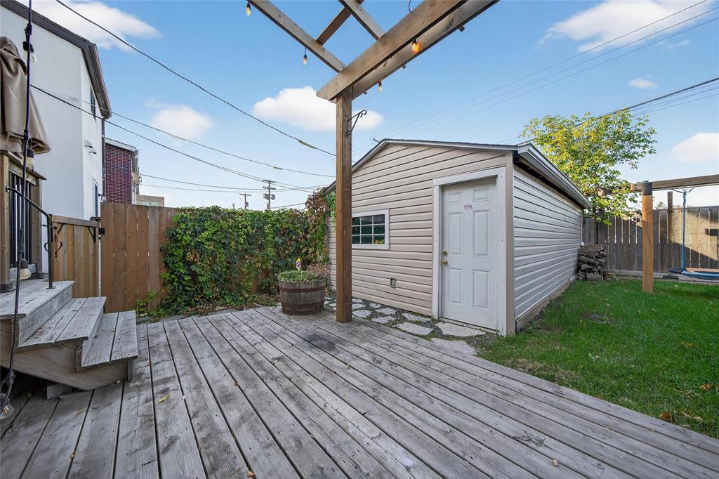 Open house CANCELED. Offers reviewed the evening received. See attachments for virtual tour. Great Red double brick wall classic West End 3+ bdrm, 3 bath, 1820 sq ft Two storey. *Home was previously a duplex*. Loaded with character trim/hardwood floors throughout, high ceilings and great for growing family/ generational families/ revenue potential. Main floor has generously sized living and dining room with access thru newer door(‘24) to a beautiful tiered deck/pergola('24) overlooking a fenced west facing backyard/1DT garage. A beautiful, newer custom kitchen('24), appliances('24), window('24) formerly back door entry which increased useable kitchen space. Rounding out the main floor is an office/bdrm and 4 pc bath. Second floor has 3 generously sized bdrms, convenient laundry(formerly 2nd kitchen) renovated '21/'22 incl washer/dryer('22), renovated full bath with walk in shower and water closet. Basement incl a good sized recroom, 3 pc bath area with claw ft tub, large multiple storage area/ furnace rm with a combo Hi EFF Boiler/"endless" hot water heater('21) and separate Hydro meters/panels. Exterior incl front patio areas, single garage and play structure area. Sweet