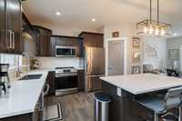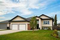 Showings start Saturday October 4th/25 with Offers as Received !! Open house Saturday October 4th-12:30-2pm. Niverville at its best! This meticulously maintained 5-bedroom, 3 bathroom custom-built home features designer décor and a bright open-concept layout with 9’ ceilings. The spacious living room with corner fireplace flows into the kitchen + dining area. The kitchen features Quartz counter tops, island, tile backsplash, pantry, and stainless steel appliances. Patio doors lead to a beautifully landscaped, fully fenced yard with a large deck—perfect for outdoor living and entertaining. The fully finished lower level offers a large recreation room with bar area with beautiful cabinets, two large bedrooms, a 3-piece bath with closet, storage room, and mechanical room. Built on a piled foundation with an ICF basement, this home also includes central air, central vac, and an oversized 24x24 attached garage—insulated, drywalled, heated, and wired 220V. Numerous modern updates throughout including fresh paint, lighting, fixtures, and more. Niverville is an amazing town close to the city with parks, schools, golf & amazing neighbours on a quiet Cul de sac. Space, style, and comfort—this one shines!