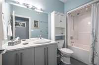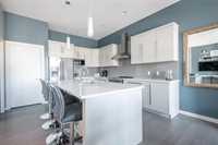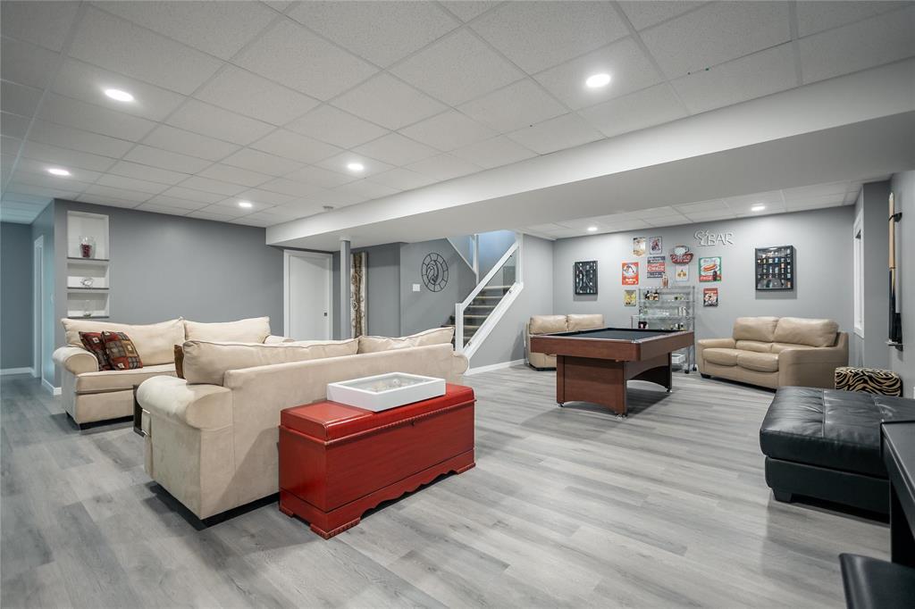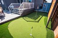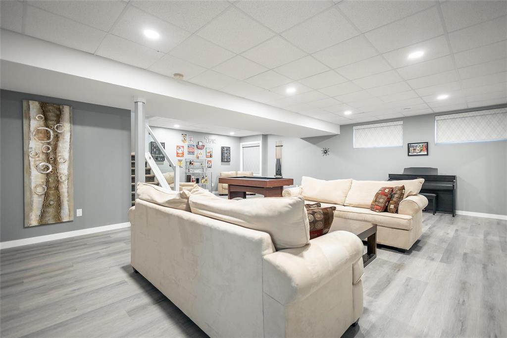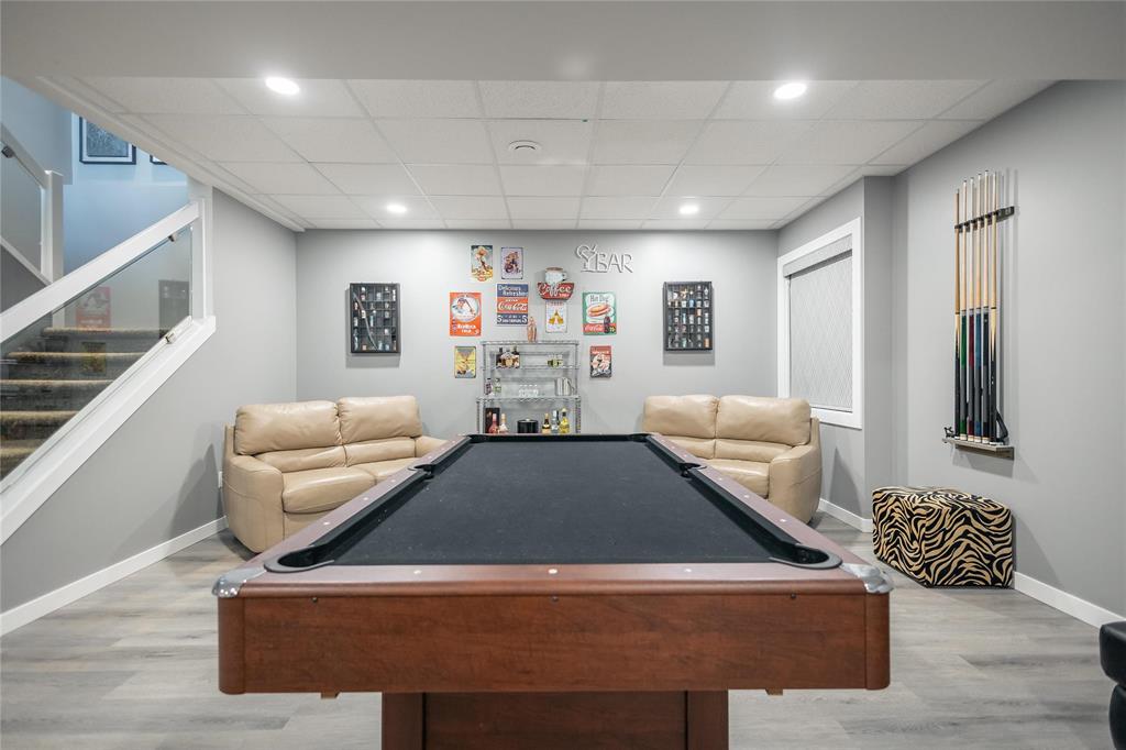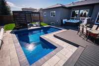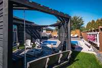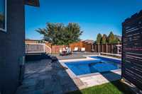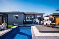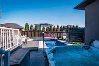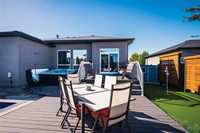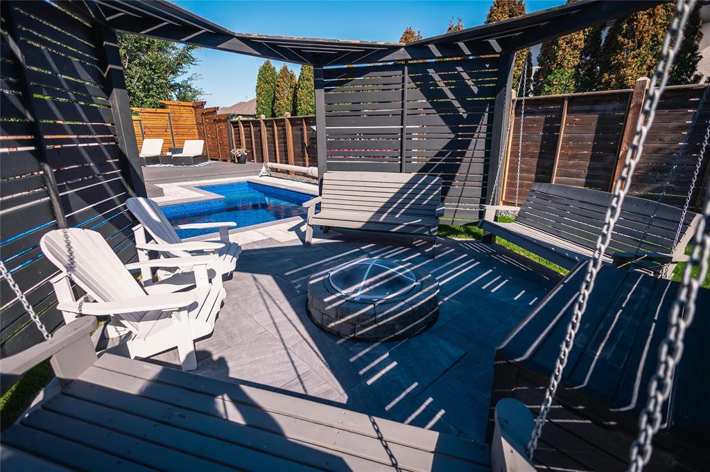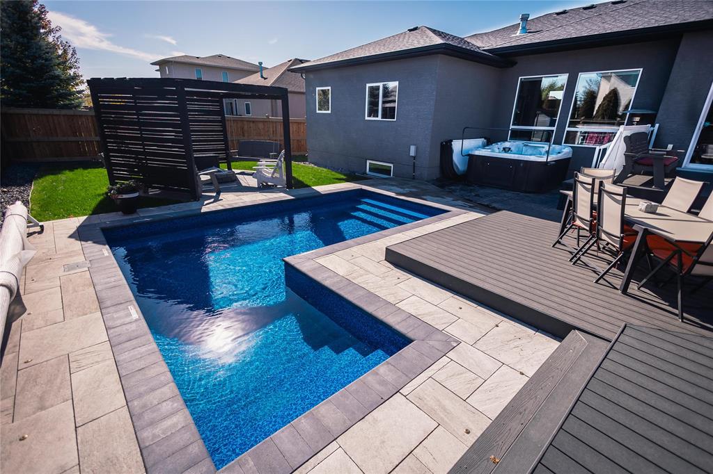 Better than new! This beautifully maintained 9-year-old Oak Bluff home offers unmatched value with a fully finished resort-style backyard you won’t find in a new build. Featuring 1,750 sqft, 3 bedrooms up + 2 down, and 3 full baths, it blends modern design with timeless finishes. Enjoy a stunning quartz island kitchen open to the great room with gas fireplace and large windows overlooking your private retreat. The spacious primary suite includes a luxury ensuite with soaker tub, tiled shower, and double quartz vanity. Hardwood floors, 9'–10' ceilings, and a glass railing add elegance throughout. The lower level offers 2 bedrooms, heated bathroom floors, storage, and fitness space. Outside is a dream: cocktail pool, hot tub, firepit with swing, composite deck, custom built privacy screening, and artificial turf putting green. Triple garage, custom blinds, Gemstone track lighting, A/C, HRV, in-ground sprinklers, and 200-amp service. Skip the build—move in and enjoy your own private resort!