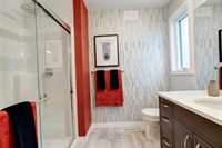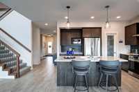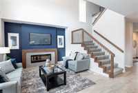 Step into the award-winning Biltmore plan by Randall Homes, a former Showhome where architectural vision meets luxurious modern living. The first impression is commanding, featuring a striking modern front elevation with premium acrylic stucco, sleek black windows, and a large concrete porch. Inside, the main floor boasts 9-foot ceilings and oversized windows that flood the space with natural light, highlighting the dramatic, breathtaking Open-to-Below Great Room. The Chef's Kitchen is designed for entertaining, complete with a massive island, upgraded quartz countertops, premium backsplash, and a chimney-style hood fan, while a valuable main floor bedroom with a full bath offers exceptional flexibility. Upstairs, a bright loft complements the rooms, leading to the luxurious Master suite which includes a custom Designer Ensuite, a large walk-in closet, and a dedicated make-up desk area. This home is fully loaded with premium upgrades, including a Composite Deck, Fully Landscaped lot, Central A/C, stainless steel appliances, premium flooring, and enhanced structural features like a Steel Beam, tall basement walls, and a convenient side door entrance to the basement. Visit us during 2025 Parade Of Homes