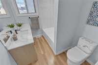 Immaculate, move-in ready home in desirable North Kildonan with high-end finishes throughout! This beautifully updated home features 3-bedroom, 1-bathroom on main floor, bright open-concept layout, designer kitchen with 7 ft Island, quartz countertops, backsplash, custom high-gloss cabinetry and stylish modern upgrades from top to bottom including pot-lights & entertainment unit. The fully finished basement with separate entry offers 4th Bedroom & 2nd bathroom with a wet bar & huge rec-room, perfect for extended family or guests. Outside, enjoy the fully fenced backyard with a deck & eye-catching curb appeal thanks to custom concrete walkway at the front that sets this home apart. Located on a quiet street close to schools, parks, shopping, and transit. Recent Upgrades include; Appliances (excl. Laundry Units), Kitchen, Paint, Flooring, Entertainment Unit, lighting. A rare opportunity to own a home that blends luxury, location, comfort, and convenience.