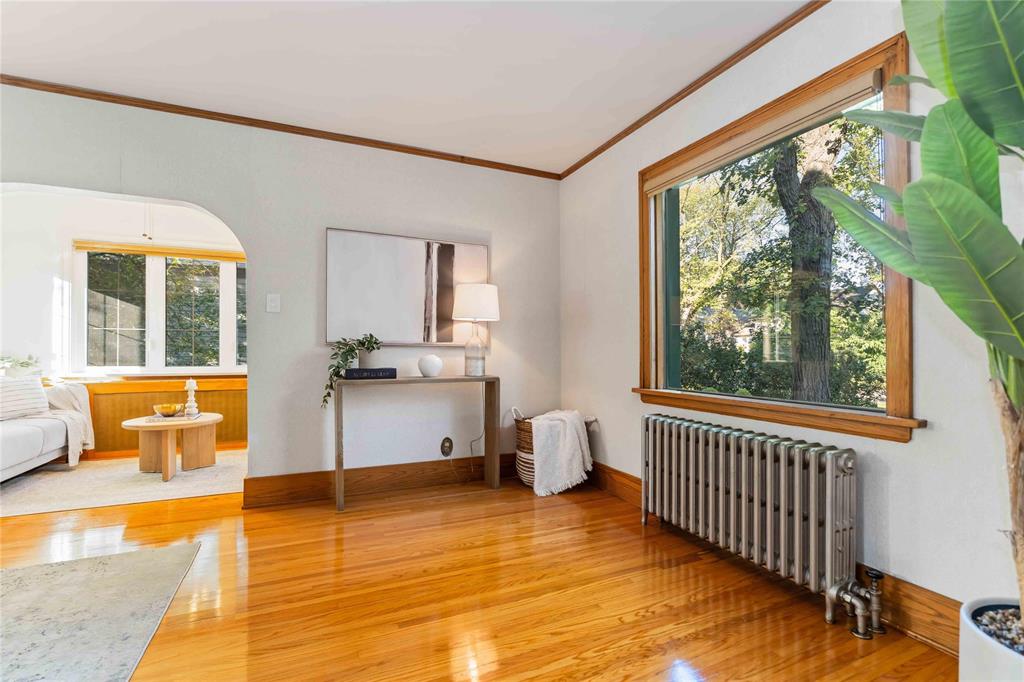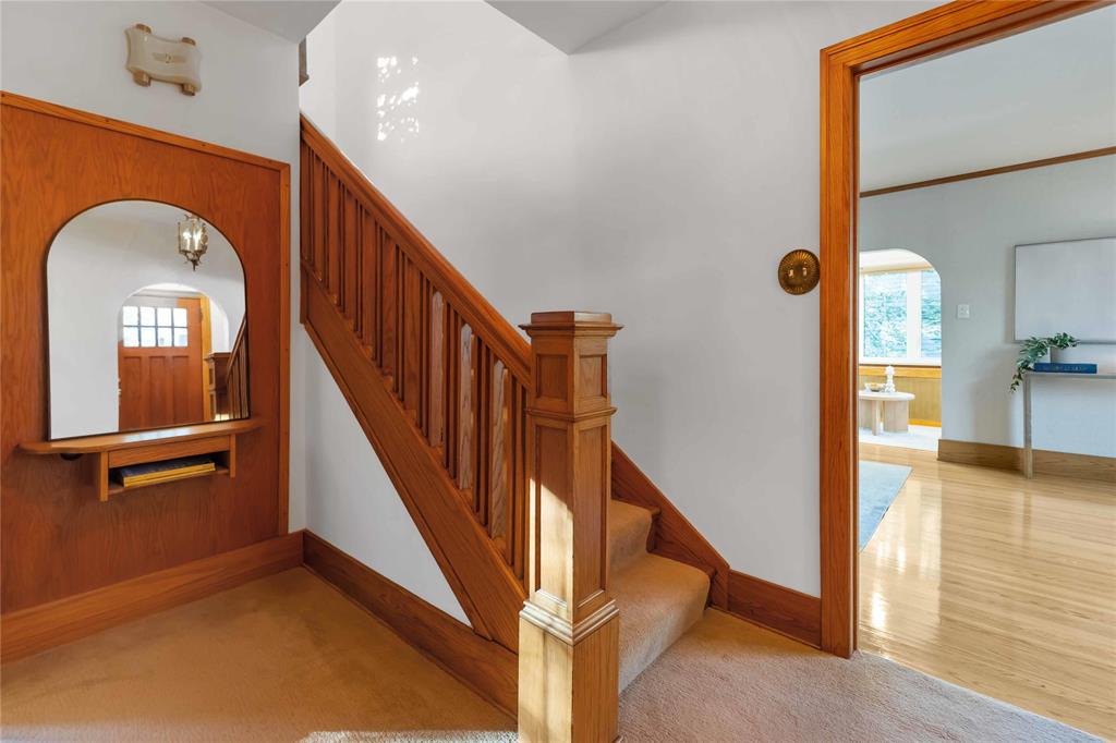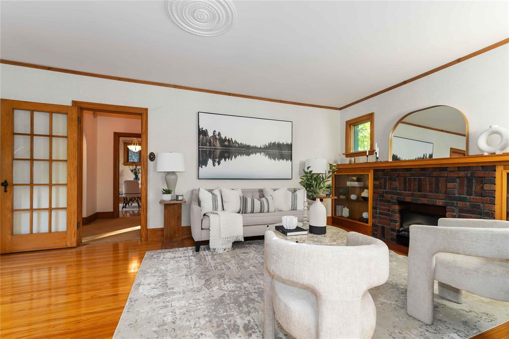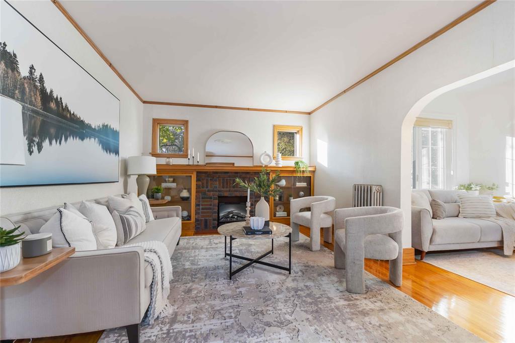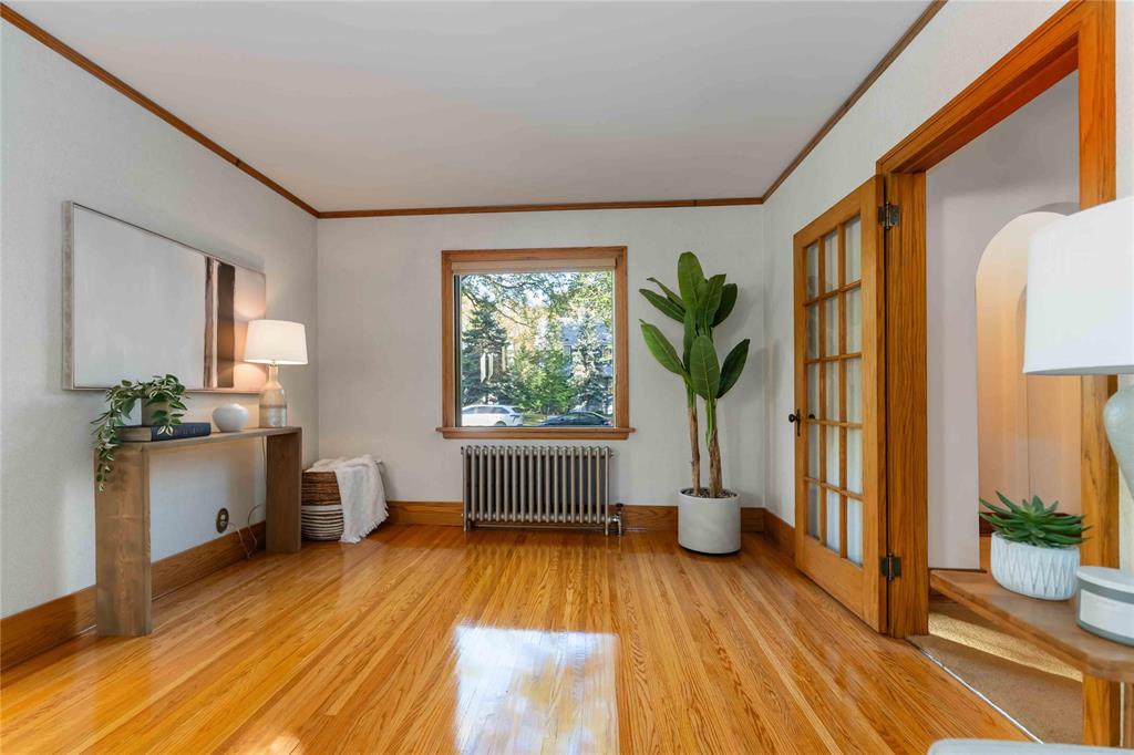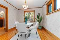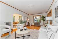This charming home showcases timeless character with immaculate hardwood floors & gorgeous wood trim. Large room sizes w/3 bdrms & 2 full baths. Perennial Filled yard w/double garage. Updates include HRV, central air & sump pump