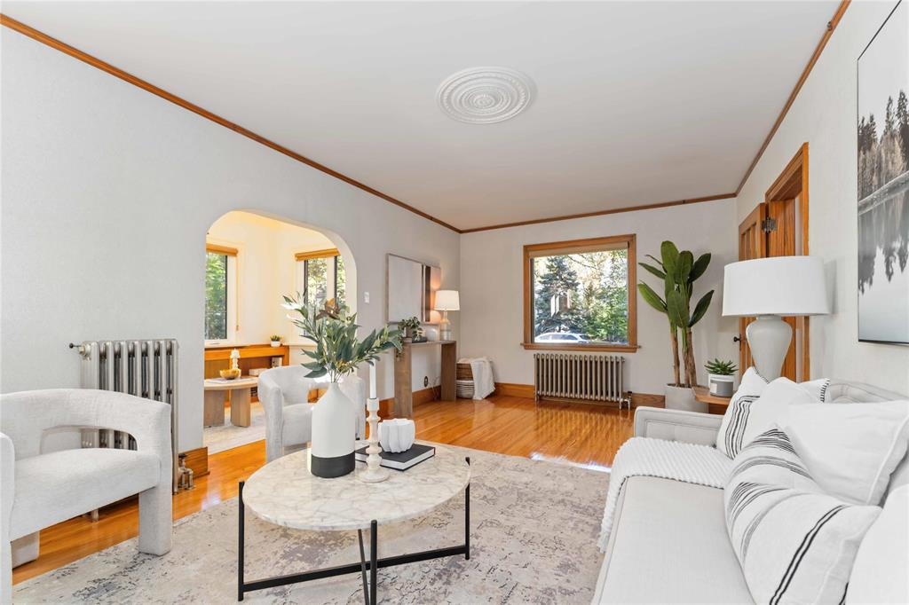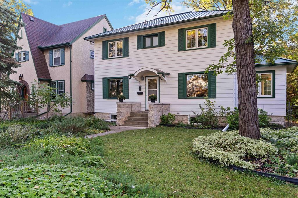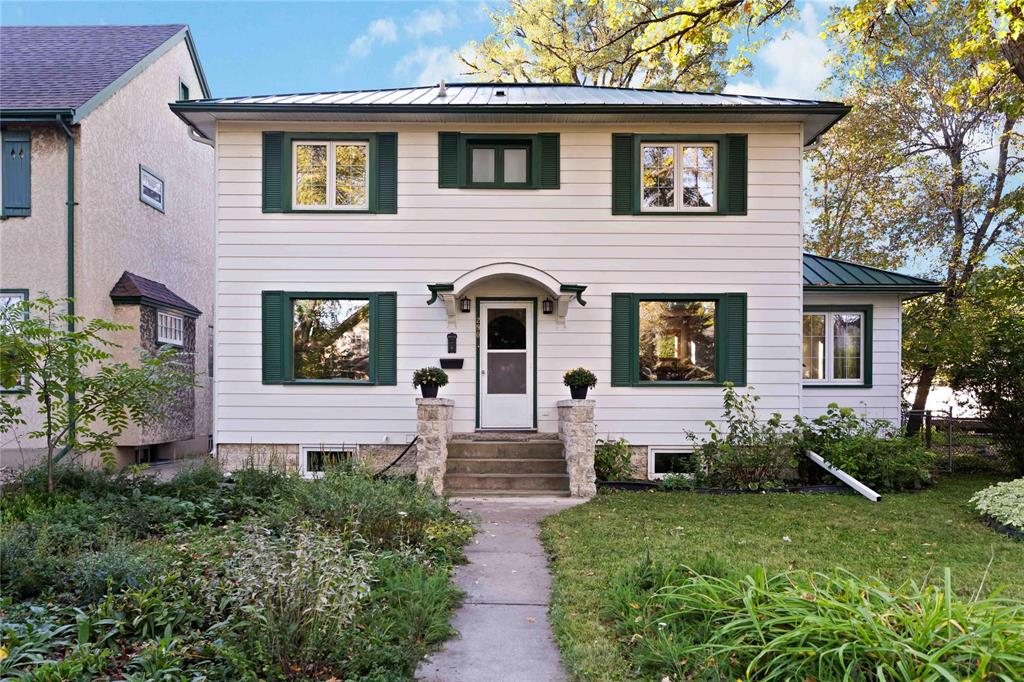 Showings Start Oct. 1st. Offers considered October 8th evening. Open house Sunday October 5th 2 pm to 3:30 pm. Beautifully maintained 2-storey family home in the heart of Riverview – one of Winnipeg’s most desirable communities! This charming home showcases timeless character with immaculate hardwood floors and gorgeous wood trim. The spacious living room w/brick fireplace connects to a sun-drenched sunroom, while the dining room is perfect for entertaining. The tasteful island kitchen offers built-in appliances, ample cabinetry, and generous counter space. Upstairs features 3 large bedrooms with charming wall sconce lighting and a fully remodeled bath with no expense spared. The insulated/drywalled basement includes a second remodeled bathroom and a rec room awaiting your finishing touch. Enjoy the perennial-filled large yard with a double garage and cedar garden shed. Updates include a long-life metal roof, replaced/insulated foundation walls (2004/05), 100 amp service, ductless split A/C, HRV, and sump pump. Walking distance to Riverview School, Montessori, and Riverview Health Centre, plus great shops and restaurants on South Osborne. A rare chance to own a gem in this sought-after neighborhood!