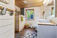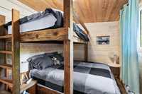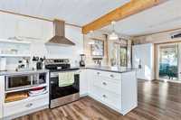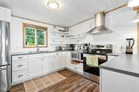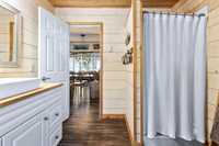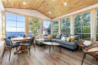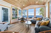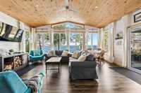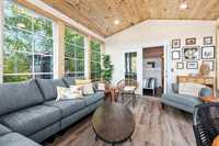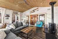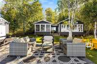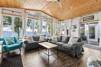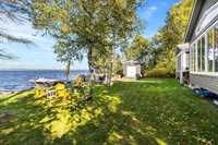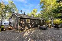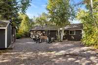 Four season cabin situated on a low profile lot with stunning upgrades—living room addition in 2018 and a brand-new screened sunroom in 2024! This 4 bedroom, 1 bathroom cabin offers classic charm with modern comfort. The crisp white kitchen features a peninsula island, while the window-wrapped living room with wood stove invites cozy gatherings. Relax in the 3-season sunroom with panoramic lake views. Outdoors, enjoy mature trees, a firepit, and multiple entertaining spaces. Includes 3 sheds, vinyl siding for easy maintenance, and a dock with a new boat winch (2025). A perfect retreat in cabin country!