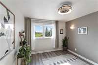 Showings start now offers Thurs Oct 9 at 7:00PM. This south facing, park and waterfront adjacent property is seldom available. Your journey starts here as you step into the foyer of this fabulous townhouse condo. Gleaming tile floor greet you and flows through the entire main floor. The eat-in kitchen is spacious with abundance of countertop space, mullion glass upper cabinet doors and built-in wine rack. Entertain your family or guests in the living room with an electric fireplace and garden doors to your own private fenced in patio. Sweet! Pot lighting and interior kitchen cabinet lighting provides this main floor with a fantastic ambience. Upstairs you will find 3 well planned out bedrooms and lots of natural light. The primary bedroom is large with a huge vanity area and built-in closets and storage. Primary bedroom and kitchen both overlook the park and pond with fountain. In the lower level you will discover a great rec-room and a bank of built-in storage closets. The laundry room is a real charmer with a stainless steel laundry sink, tons of built-in cabinets, stacking washer and dryer. Condo has water filtration system, HE furn, Central AC, Central Vac and parking right in front of the unit.