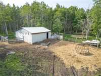 Nestled on 80 beautifully treed acres, this exceptional property offers the perfect blend of country charm and practical living. The 2,200 sq ft two-story home features in-floor heat throughout and is designed for comfort and flexibility. The main floor boasts a spacious bedroom, convenient laundry area, and open living spaces ideal for family life or entertaining.
