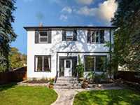A main-floor office overlooking the backyard and a stylish powder room add convenience and functionality. Upstairs, you’ll find three bedrooms, including a uniquely spacious primary suite, along with a beautifully finished 4-piece bathroom. The lower level offers a generous rec room complete with a bar, plenty of space to relax or entertain, and additional storage with laundry. Step outside to your private backyard oasis, designed for both gatherings and quiet moments. A double detached garage completes the property. Located in a highly desirable area close to countless amenities, this home truly has it all—character, updates, and an unbeatable location. A must-see!