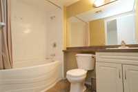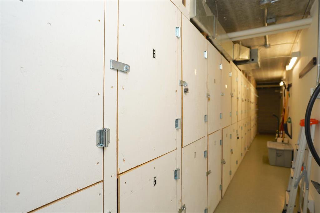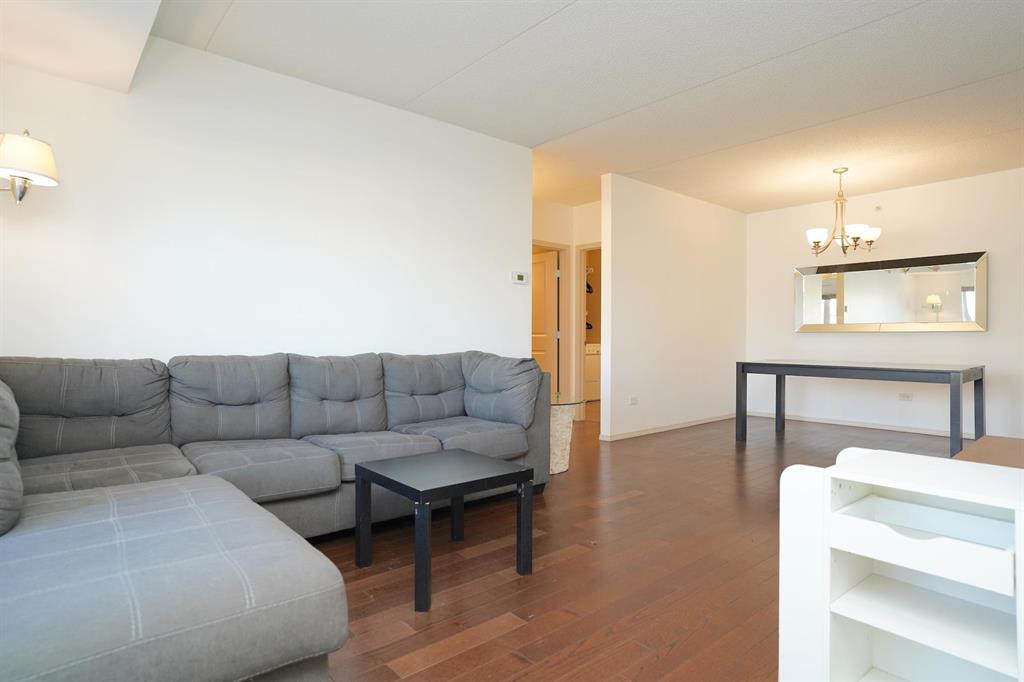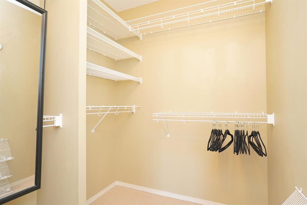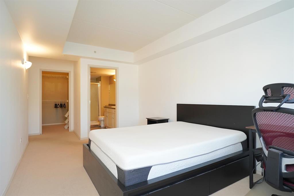 The oversized 17 ft primary suite includes a walk-in closet and 3-piece ensuite, while the second bedroom is conveniently located next to the main 4-piece bath with soaker tub/shower combo. Added conveniences include in-suite laundry, central air, covered parking, storage locker, and access to the resident party room. The secure concrete building offers keyless entry, video surveillance, and is both pet and rental friendly.