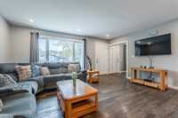 OH Cancelled. Sat/Sun Nov 1/2 2-4. Pending. Welcome to this well cared for home that has so much to offer. It's open concept living room and updated kitchen with granite breakfast counter hosts stainless steel appliances. Everything is ready for you to move in and add your decor. It's owner has kept this home painted and up to date with all the right attention. HWT (2025), Roof (2023), High Efficiency Furnace (2015), windows (2017), 3/4" hardwood flooring (LR and Bedrooms), updated kitchen and bathroom. The cozy three bedrooms on the main floor have feature walls and no carpet. The basement has an extra room with a non egress window that is currently used as a bedroom but could make a great office or study room. The basement has a large recreation area for extra space for family and friend time. Low maintenance but high utility back yard with deck, shed, garden and hot tub. Hot tub pump is 3 yrs new. The oversized double garage is a mechanics dream!. This lovely treed street is very calming and close to school, pool, parks, arenas and shopping.