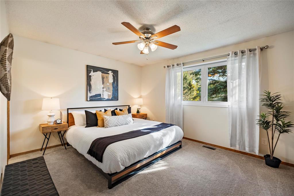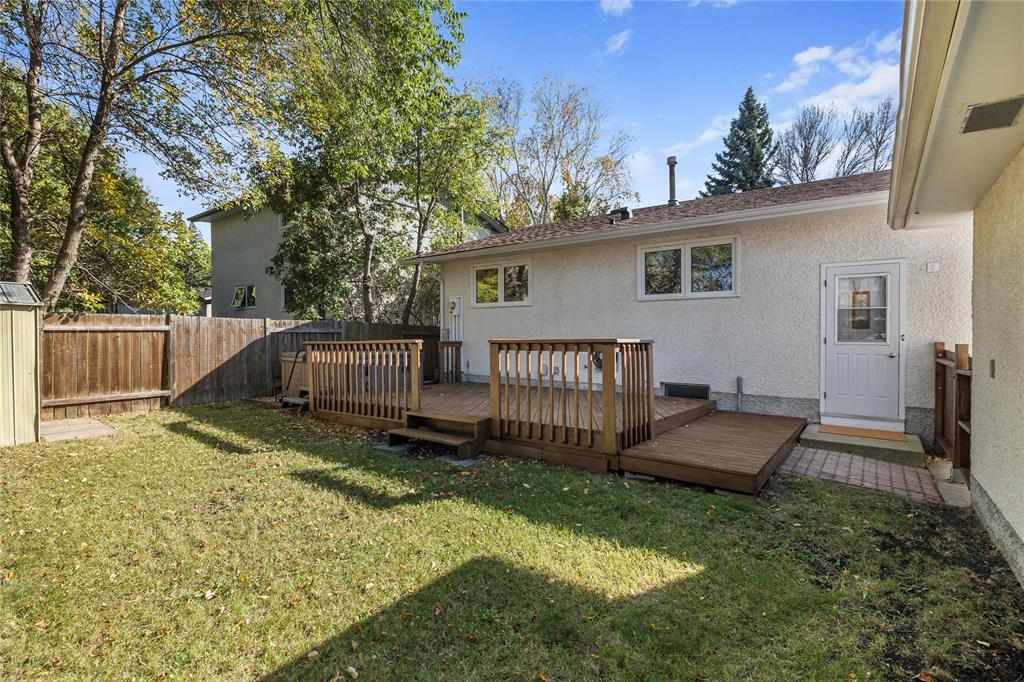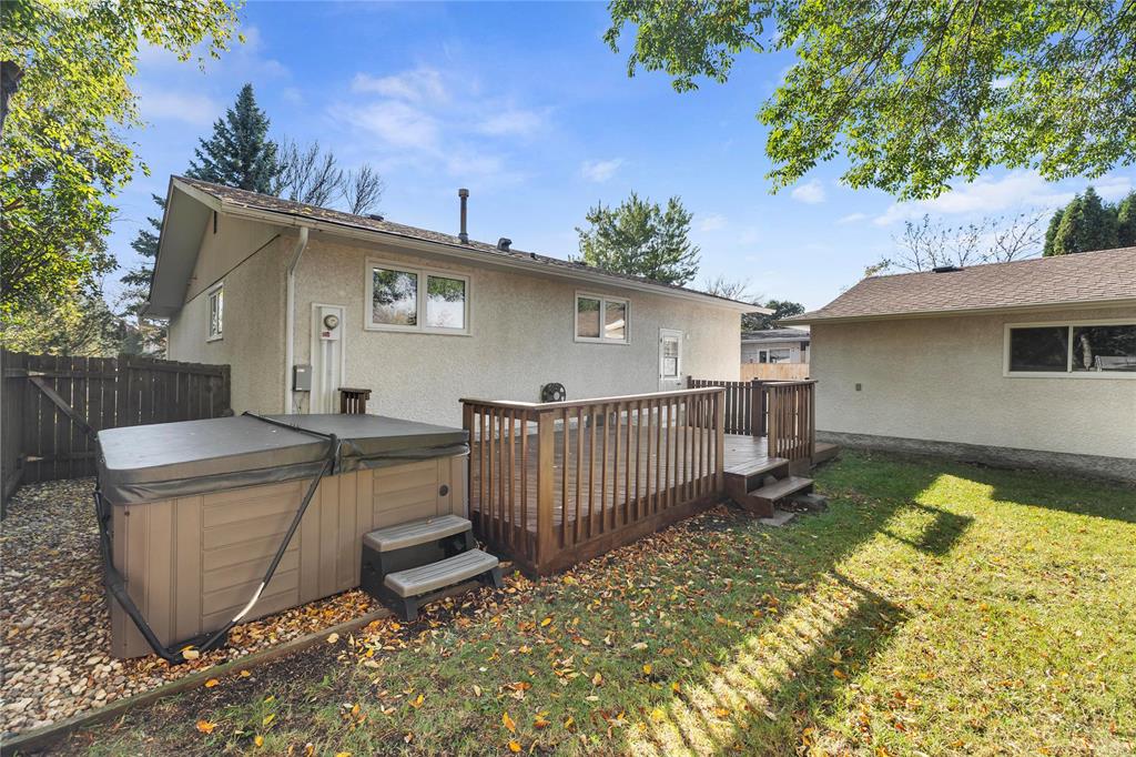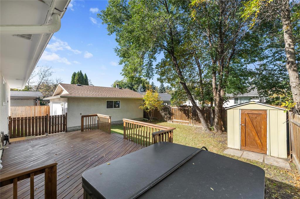 OFFERS OCT 7th EVENING. LOVELY 1262 SQFT 3 bed | 3 bath BUNGALOW located in Charleswood! Classic L-shaped living / dining room layout with mid-tone engineered bamboo floors running throughout; south-facing living room features a corner, brick-facing fireplace bringing a sense of coziness. The spacious eat-in kitchen has stainless steel appliances, pantry, and a great opportunity to further customize this space to your liking! The primary bedroom offers double closets, a large south-facing window, and a 2-piece ENSUITE bath. Two other bedrooms, updated 4-piece bathroom, and a linen closet complete the main floor. The FINISHED basement is expansive, allowing for recreation space, storage, and much more. Enjoy vintage vibes, a wet-bar, generous ceiling height, 3-piece bath, and a den - perfect for a home office, playroom, or a future bedroom (non-egress). Step into the backyard to find a 22 x 12 low profile wood deck, hot-tub, storage shed, and 22 x 24 INSULATED double detached garage. High-efficiency furnace, updated PVC windows on the main floor, paved driveway, and NEW ROOF SHINGLES (house) completed September 2025. Public transit, Harte Trail, schools, shopping, and other amenities nearby!