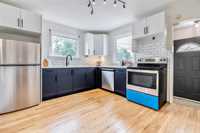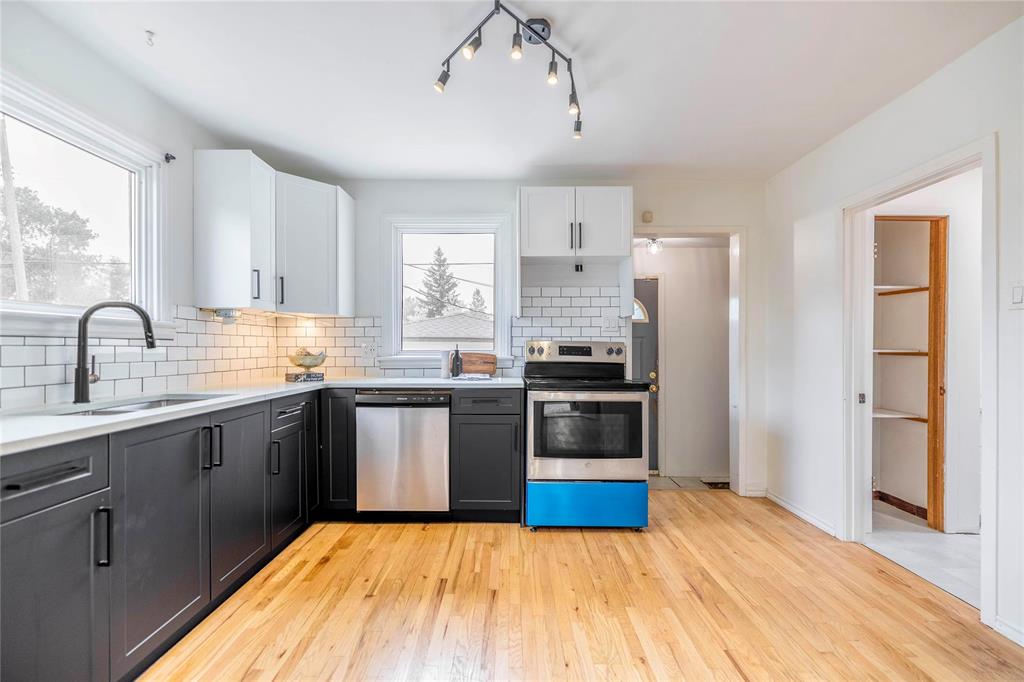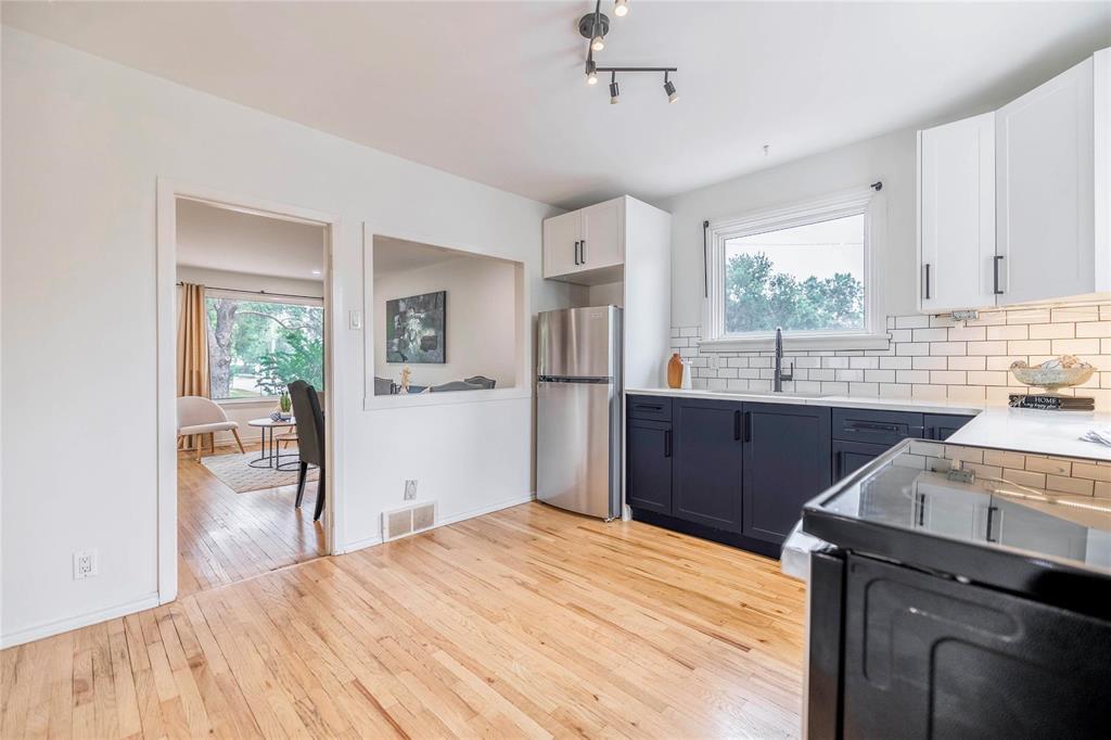 Offers Wednesday Oct 8th evening. Spectacular mid-century bungalow on an oversized lot with a full basement just steps away from Red River College! This property is mostly renovated, but is packed with potential value to add. Tons of notable updates, including shingles, kitchen, windows and more, but loads of potential still to be captured! Handy rear entrance near the basement stairs, tons of parking, and tons of space to add future beds/bathrooms downstairs. Excellent yard with a single garage and additional parking pad + deck and greenspace. Parks both adjacent & behind are perfect for families with pets and children. The main floor is excellent, featuring original hardwood floors, an amazing kitchen with quartz countertops and updated cabinetry, and a tile 4 piece bathroom. Must be sold! Come check it out today!