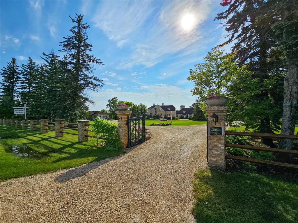 Spectacular scenic views! Rare opp to own a magnificent St Andrews landmark w/ 600' of river views. From the moment you enter the private gated drway, you'll feel as if you have been transported to an elegant English Country Manor. This stately approx 4654 sq ft home situated along historic Red River is surrounded by gardens, majestic trees & manicured lawns. You'll be impressed with the many fine details w/ Blue Pearl Granite flrs thru Grand Foyer, an abundance of oak hardwood flrs & millwork, 4 gas FP's, several antique light fixtures, attractive ceiling medallions & gorgeous cherrywood ktch.The main floor mstr suite includes a luxurious ensuite w/ steam shwr & whirlpool bath while the upper lvl includes 3 bdrms, storage rm & full bthrm w/ heated tile flrs.FF basement w/den, games rm,wet bar, abundant storage space w/direct access to amazing back yd w/tiered stone patios. 4 car att gar w/ 4 car det gar/wrkshop & circular driveway. All of this & more set on approx 6 acres of pristine riverfront property!