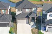 Updated Pricing – Great Value! This spacious 2,781 sq. ft. house offers 4 bedrooms, 2nd floor loft, and 2.5 baths—perfectly blending comfort with luxury. The chef’s kitchen features an oversized granite island, ideal for cooking and entertaining with lake views. High-end appliances include cooktop, double wall oven, microwave drawer with hidden control panel, refrigerator, and dishwasher. A bright dining area surrounded by windows opens onto a 19 x 14 ft balcony with glass railings, extending the lakefront views outdoors. Large windows throughout flood the home with natural light while framing breathtaking vistas. Upstairs, you’ll find three spacious bedrooms and versatile loft. The primary suite boasts serene lake views, a luxurious ensuite, and walk-in closet. Additional features include in-ceiling speakers, 10 ft main floor ceilings, 9 ft basement ceilings,Duradek balcony, hardwood flooring on both main and second levels, central A/C, Hunter Douglas motorized blinds with remotes, 200 AMP service. With its walk-out basement and exceptional design, this home combines elegance and functionality. Contact today to schedule a viewing and begin your next chapter in the Lakefront Living Dream Home.