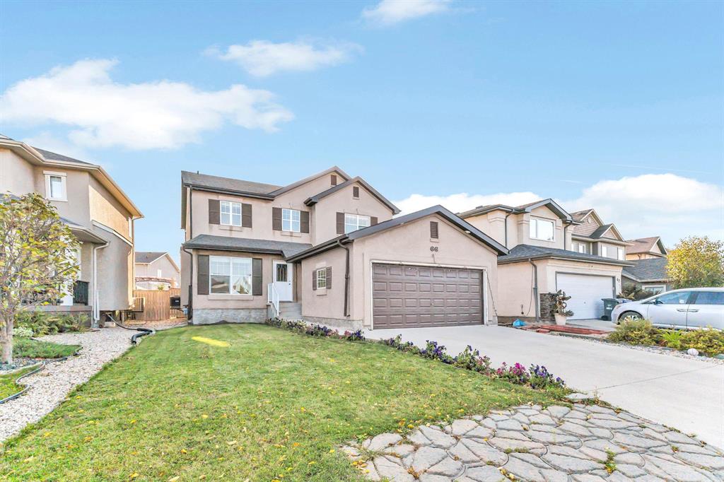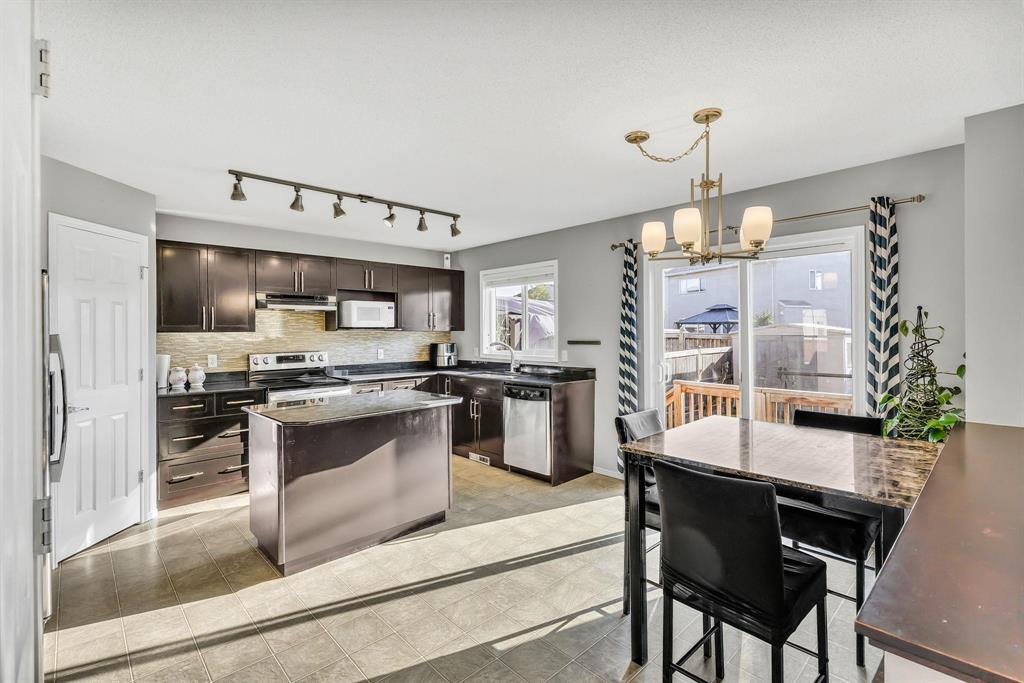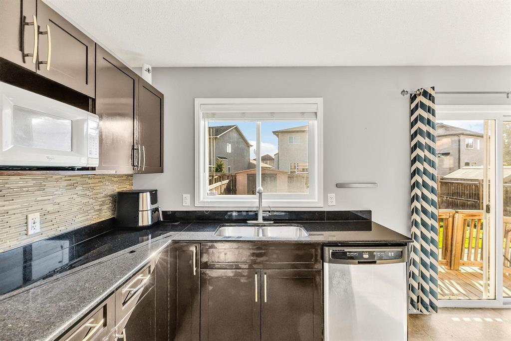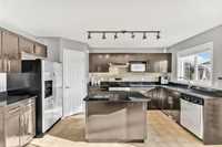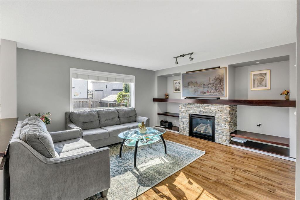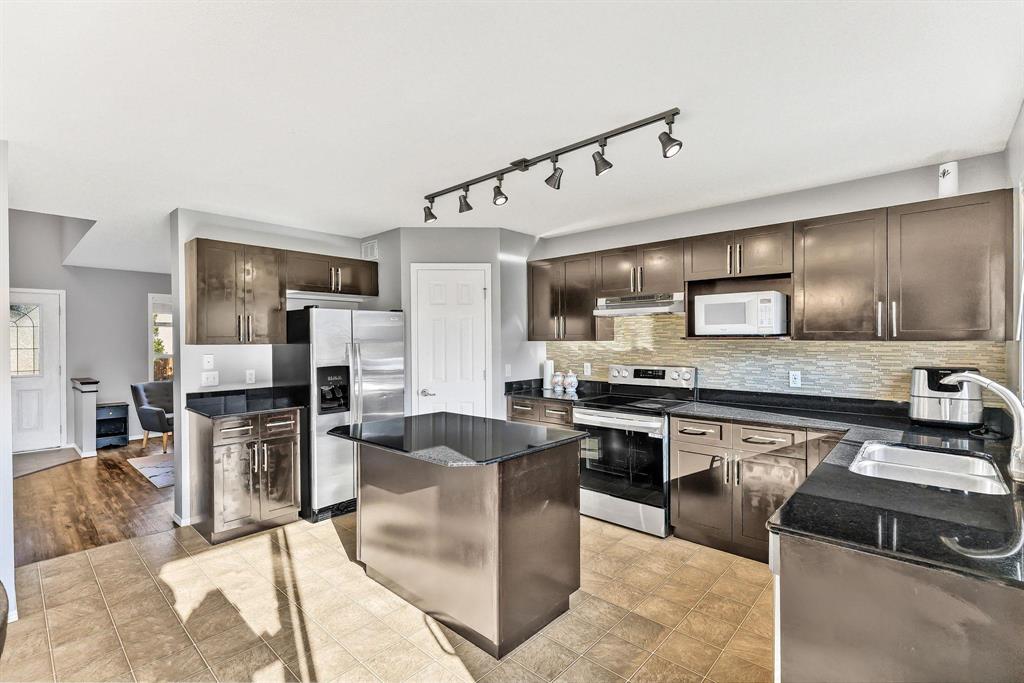 Showings start now. Offers presented Oct 6th. Excellent value! Stylish, spacious, and sun-filled—this 2-storey delivers everything a modern family needs. The open-concept main floor features a great room with custom nook wall, a warm family room with gas fireplace + stone surround, and a stunning eat-in kitchen with maple cabinetry, stone countertops, tiled backsplash, corner pantry, and an island w/ breakfast bar. Patio doors open to a sun-soaked southwest-facing yard with deck, patio, and garden boxes—ideal for outdoor living. A powder room, laundry, and mudroom connecting to the double attached garage add convenience. Upstairs, find 4 private bedrooms, including a primary retreat with ensuite bath and walk-in closet. A full 4pc bath completes the level. The partially finished basement offers a large recroom area(needs finishing), bedroom, and a bathroom. Close to schools, trails & amenities—this is the one you’ve been waiting for.