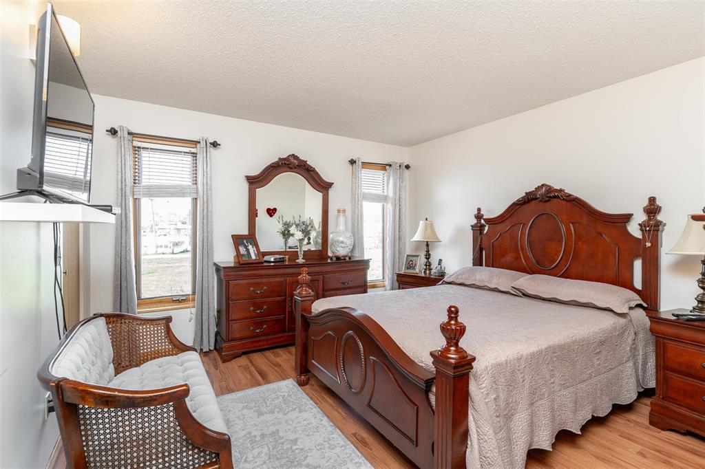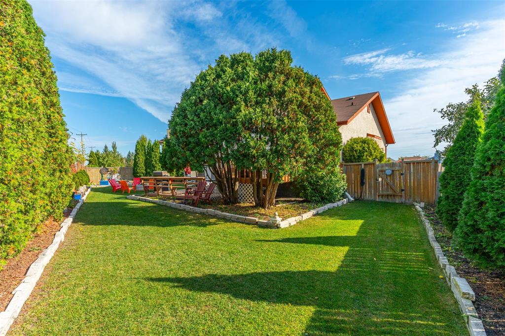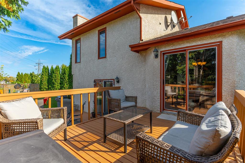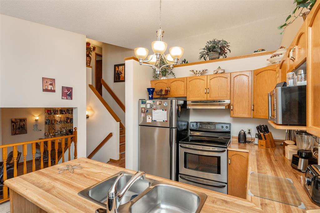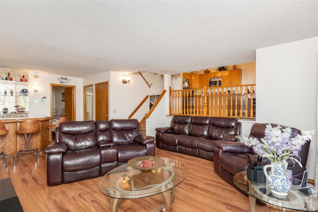 Showings start Tues Oct 7th with offers presented on Tues Oct 14th. This well-cared-for home in the Maples sits on an oversized pie-shaped lot with beautiful landscaping, a two-tiered deck and an interlocking stone driveway — perfect for family living and outdoor entertaining. Inside, you’ll find a bright and inviting layout featuring a large living and dining area with vaulted ceilings and an eat-in kitchen that overlooks the cozy family room. The upper level hosts three bedrooms, including a generous primary suite with a walk-in closet and a full ensuite complete with a tiled tub surround and glass door. The main bath is equally well appointed with a tiled surround and glass door. A convenient main floor bedroo and full 3-piece bath provide flexibility for larger family's or a home office. The finished lower level includes a comfortable rec room, a large crawl space for storage and a second kitchen — ideal for extended family or hosting large gatherings. Recent updates include flooring, a high-efficiency furnace, central air and hot water tank.