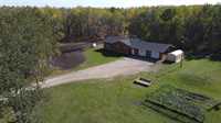 Welcome to this beautifully updated 1,351 sq ft home, perfectly situated on a private 4-acre treed property. Surrounded by mature trees, this peaceful retreat offers both space and convenience, with shopping, a playground, and golf nearby. Inside, you’ll find many recent upgrades that bring comfort and peace of mind. The home features newly remodeled bathrooms completed in 2025, a new septic tank and field installed in 2023, and new shingles in 2023. Every detail has been thoughtfully maintained, ensuring this home is move-in ready for its next owners. The spacious layout includes comfortable living areas designed for both relaxation and entertaining. A highlight of the property is the double attached garage with in-floor heat, offering year-round convenience. A shed outside provides additional storage, ideal for tools, outdoor equipment, or hobbies. With its blend of modern upgrades and country charm, this property delivers the best of both worlds: a serene retreat with amenities close at hand. Don’t miss the chance to make this beautiful acreage your new home!