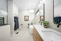 Experience exceptional luxury in this custom-built masterpiece by Dwell Homes, perfectly situated in the prestigious River Heights neighbourhood. The main level is adorned with elegant engineered hardwood floors, guiding you into a breathtaking living room featuring soaring 14-foot ceilings and a striking gas fireplace set against a dramatic feature wall. At the heart of the home lies a chef-inspired kitchen, beautifully finished with Taj Mahal Granite countertops and backsplash, premium appliances, abundant custom cabinetry for storage, and a hidden coffee nook for your morning ritual. Each spacious bedroom includes its own private ensuite with heated floors, offering comfort and privacy for every resident. The fully insulated lower level offers incredible potential, with high ceilings and large windows creating a bright, open space—ideal for a home office, studio, or future development. With side access from Academy Road, it’s perfectly suited for a work-live setup. This home is built on piles with a structural wood floor system and includes an oversized, double-attached garage for added convenience. A transferrable interest rate is available—contact for details. Property taxes to be confirmed